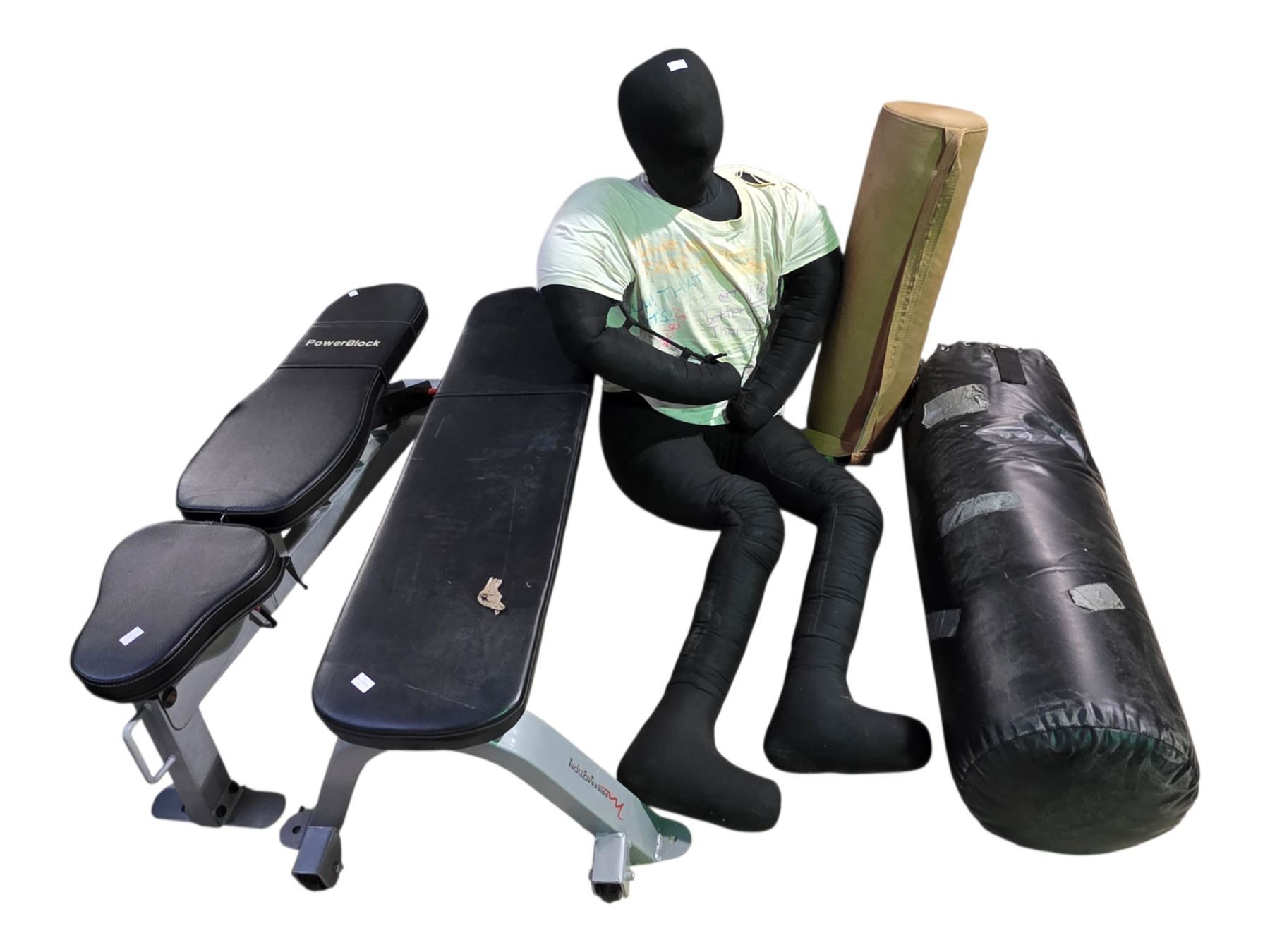 2 Workout Benches, Training Mannequin, and 2 Punching Bags