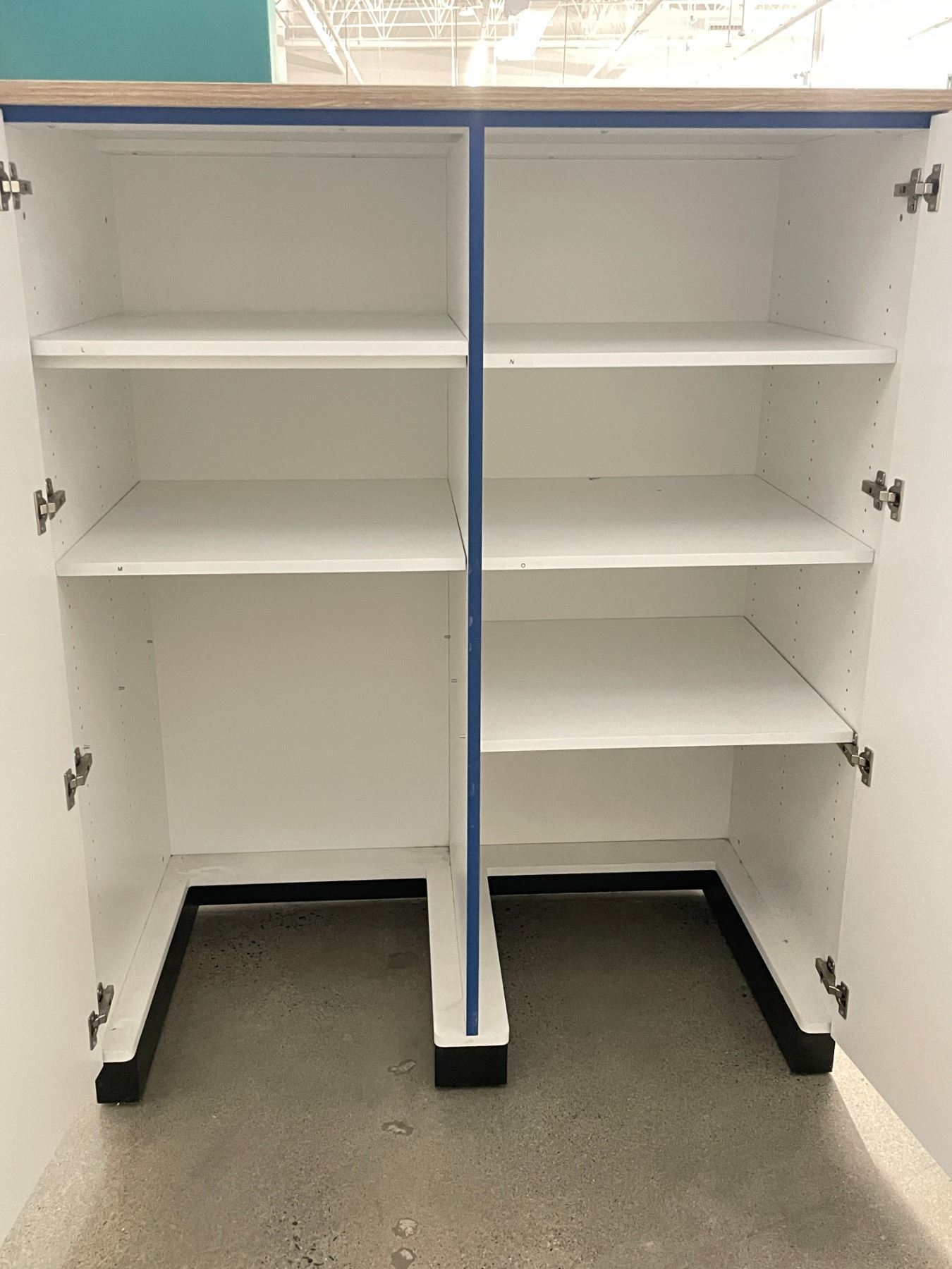 2 door retail storage cabinet (approx. 48in W 61in H 28in D - excellent condition) May contain between 3-6 shelves in lot BIDDERS ARE RESPONSIBLE FOR ALL COSTS ASSOCIATED WITH PICKUP OF THEIR LOTS INCLUDING BUT NOT LIMITED TO RENTAL OF EQUIPMENT, FORKLIFTS, LABOUR, TRUCKING, TOOLS ETC.
