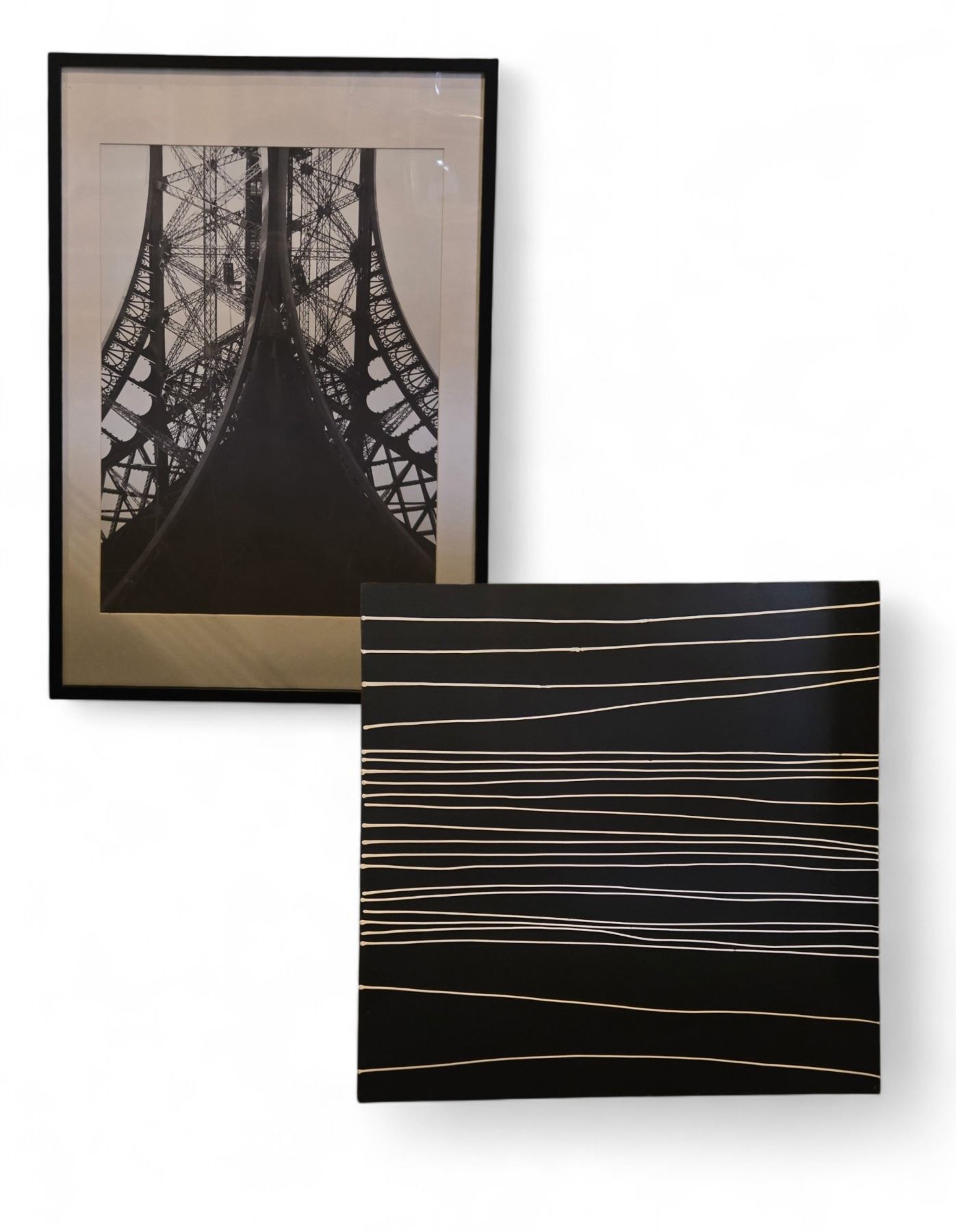 2 pc - Black & White Abstract 39.5x39.5" & Eiffel Tower Picture 25x37"