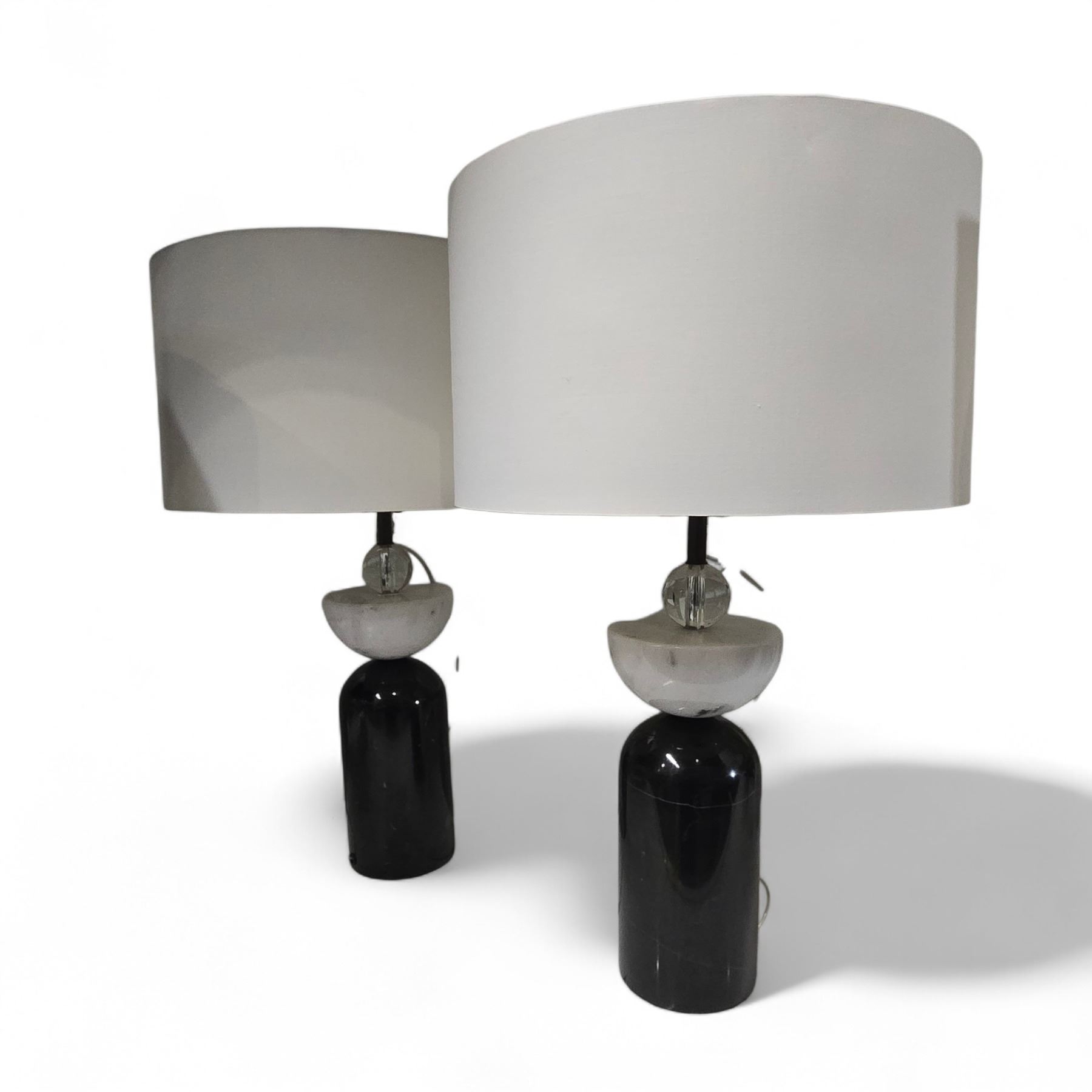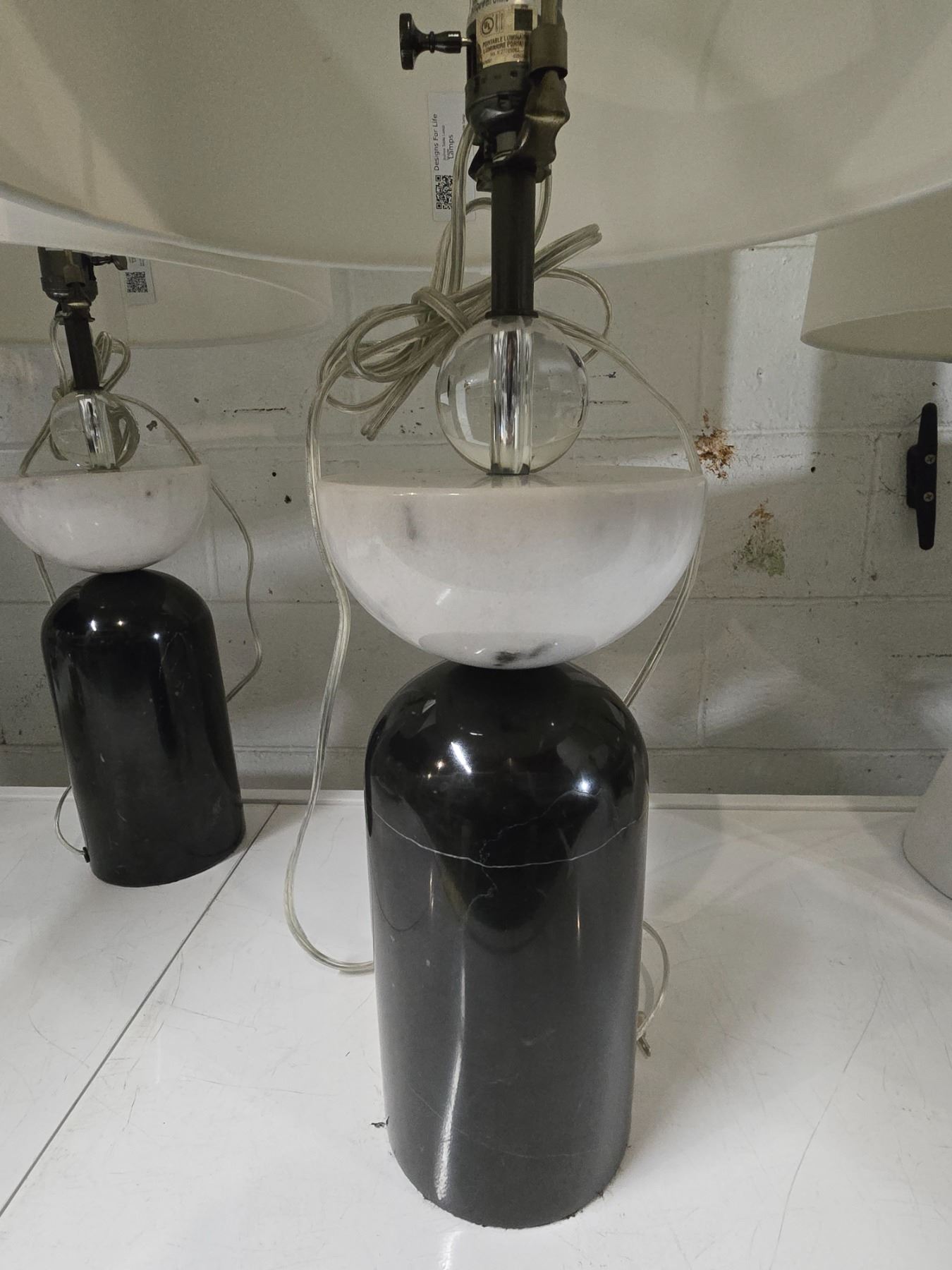 2 pc - White & Black Marble Lamps w/ Shades - 27"H