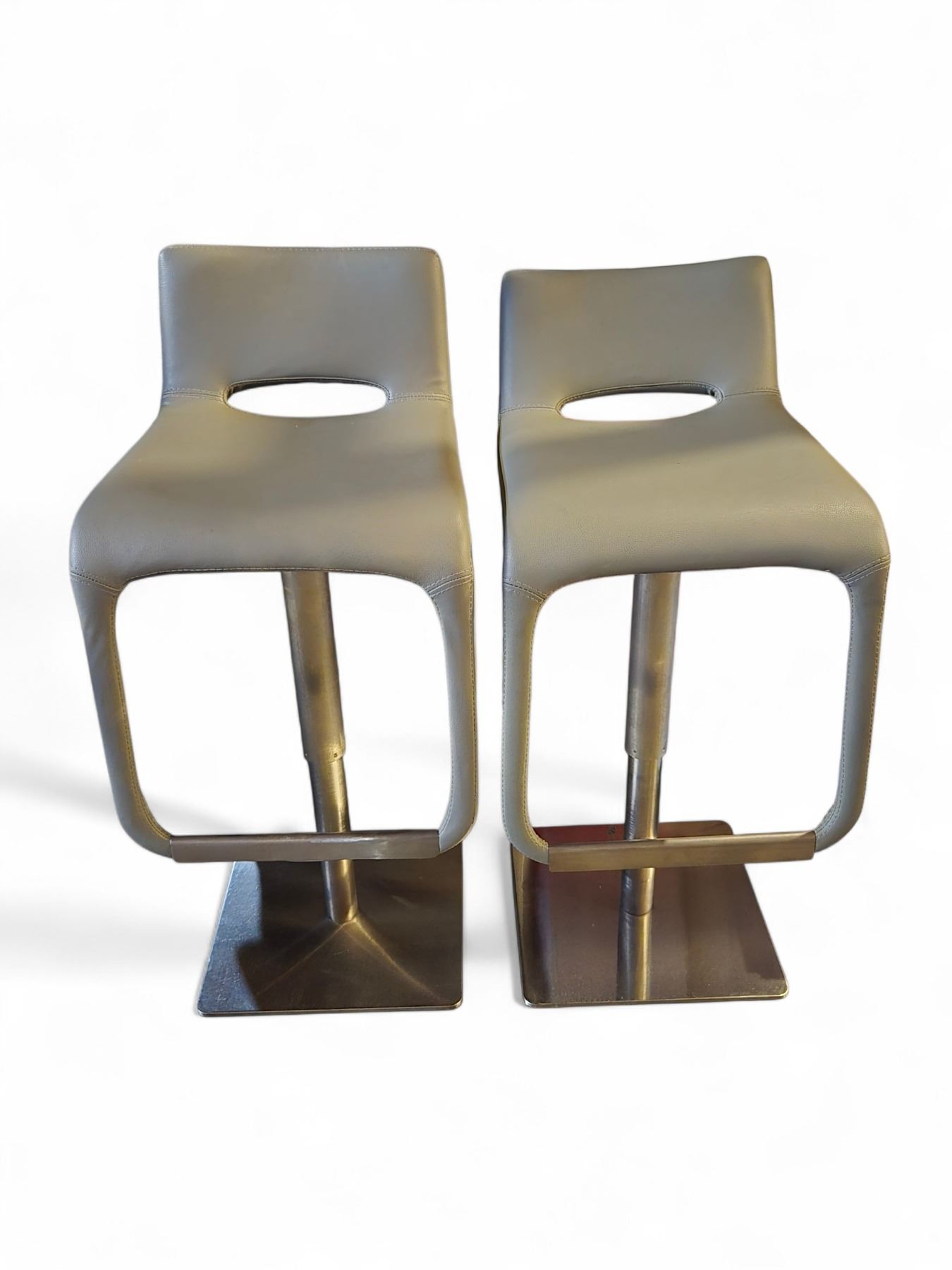 2 pc - Grey Leather Adjustable Height Swivel Bar Stools