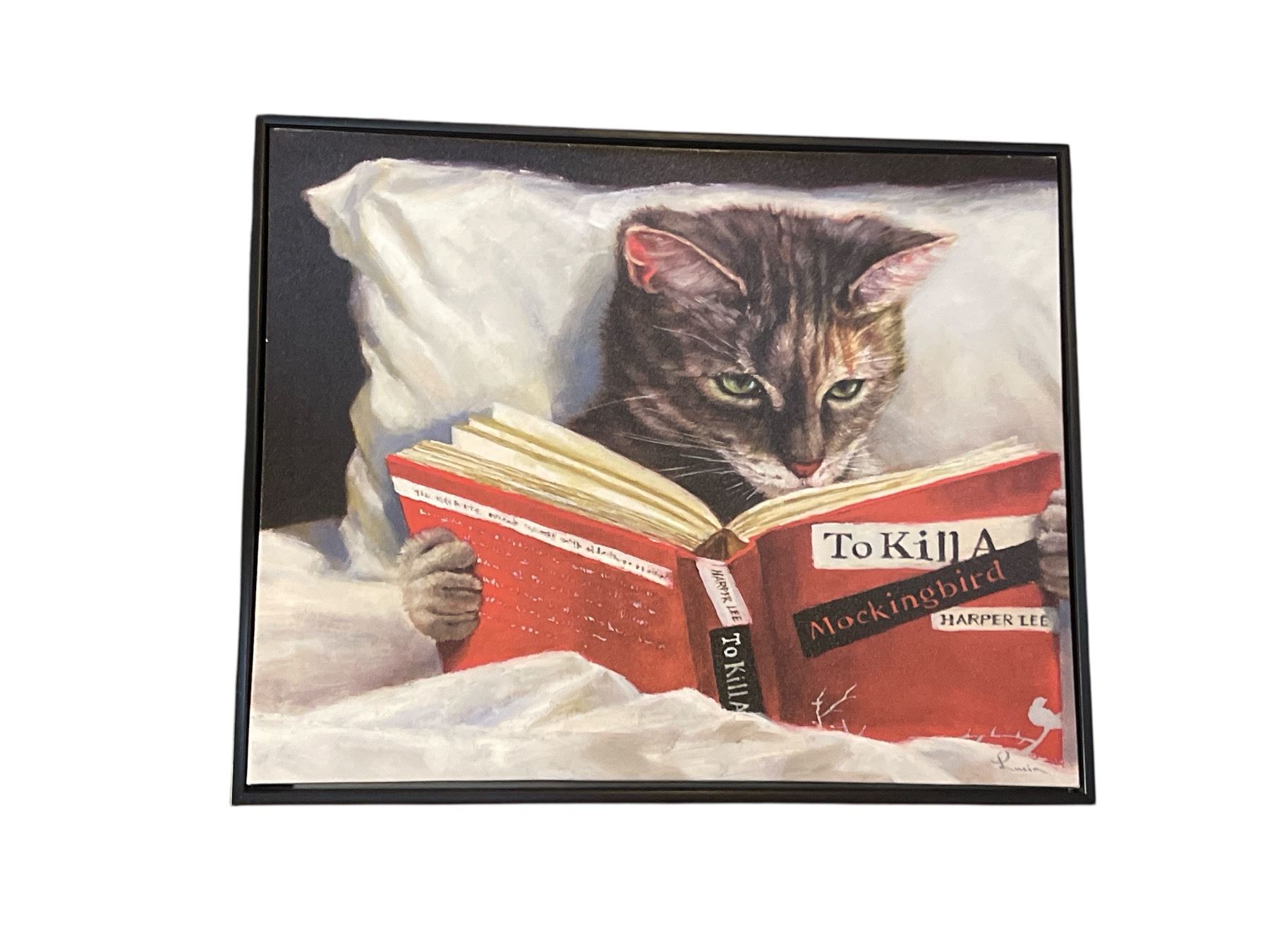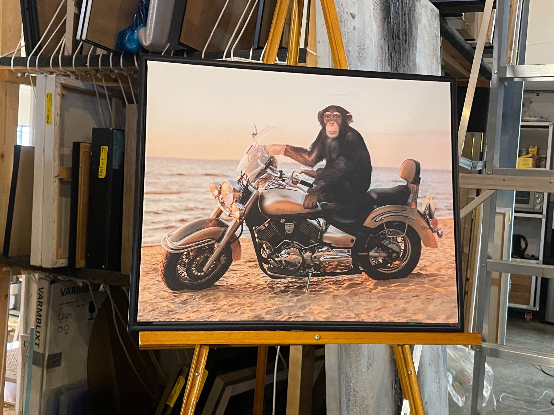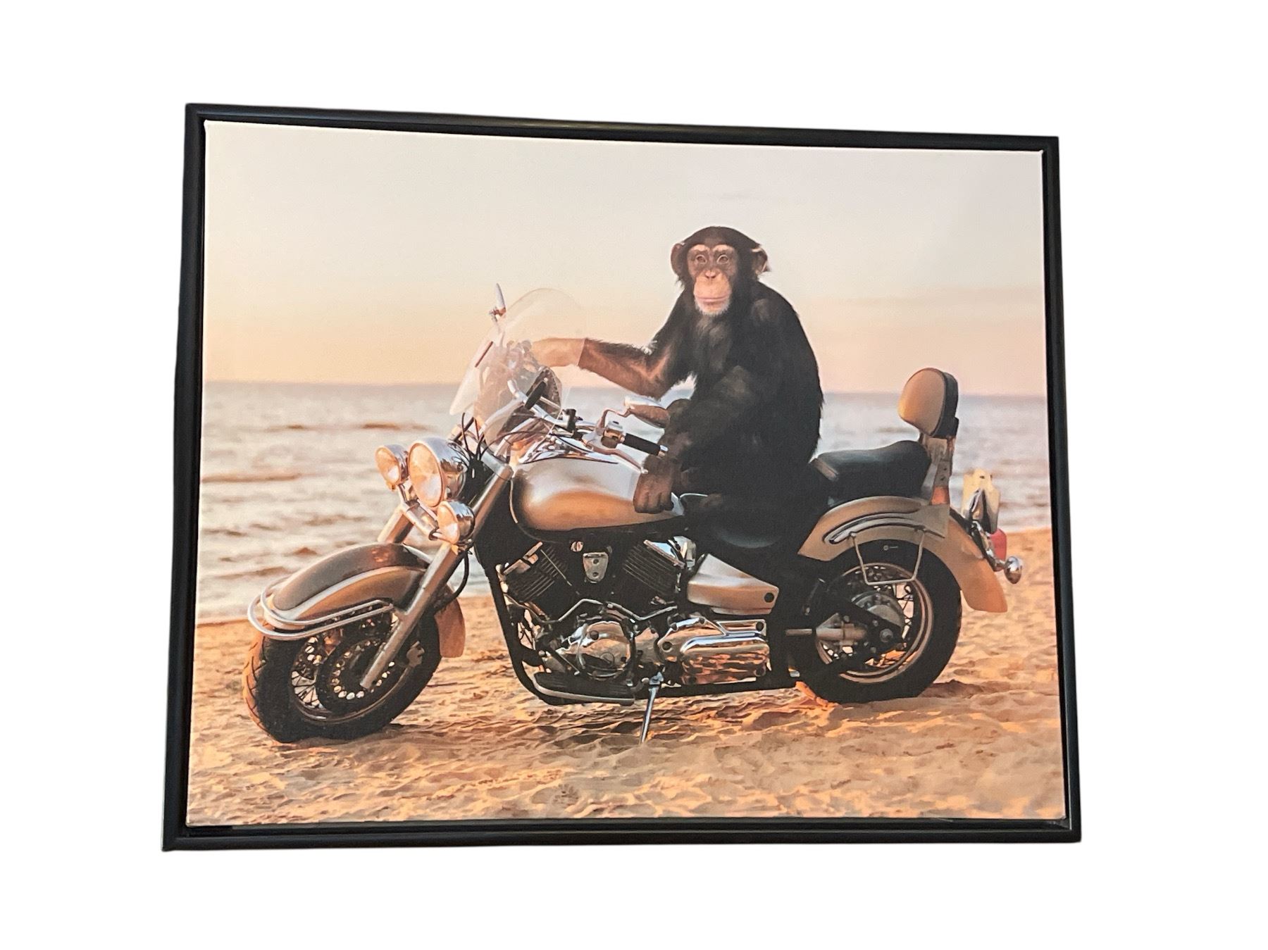 2 pc - Monley on Motorcycle & Cat Reading Pictures - 21x17"