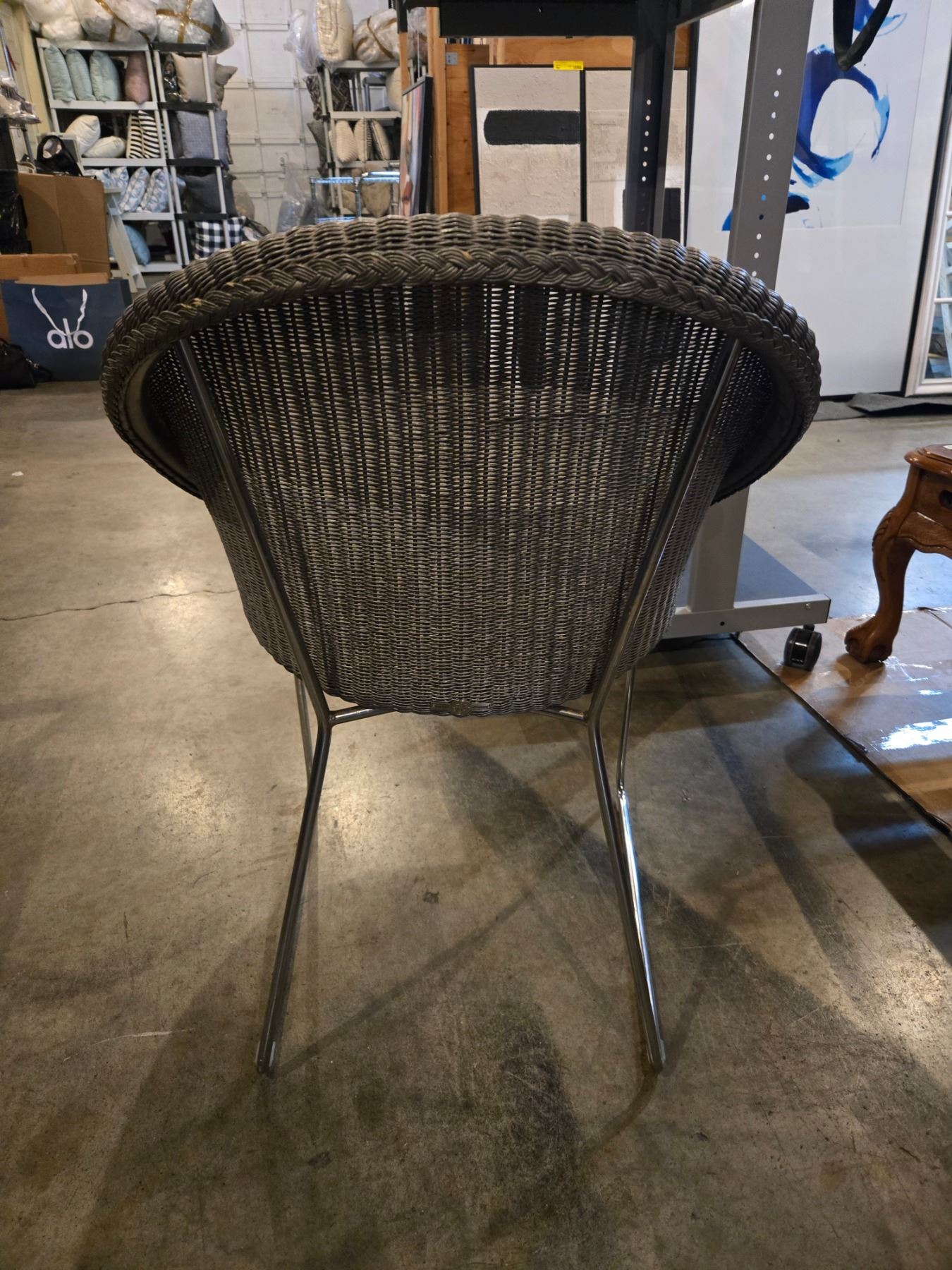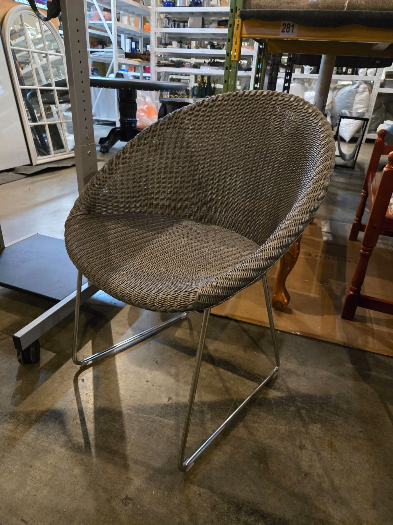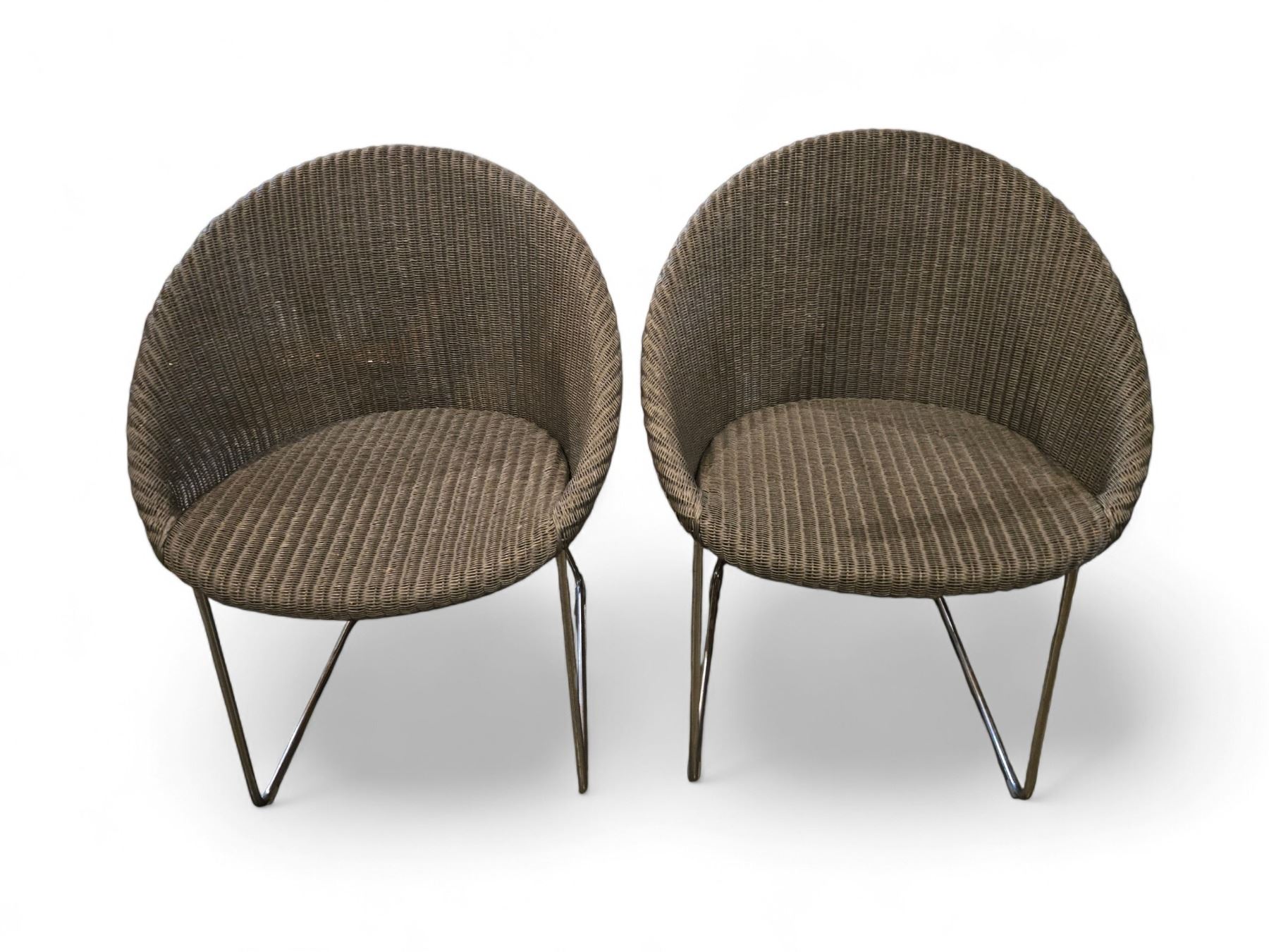 2 pc - Outdoor Grey Wicker Modern Chairs w/ Chrome Legs