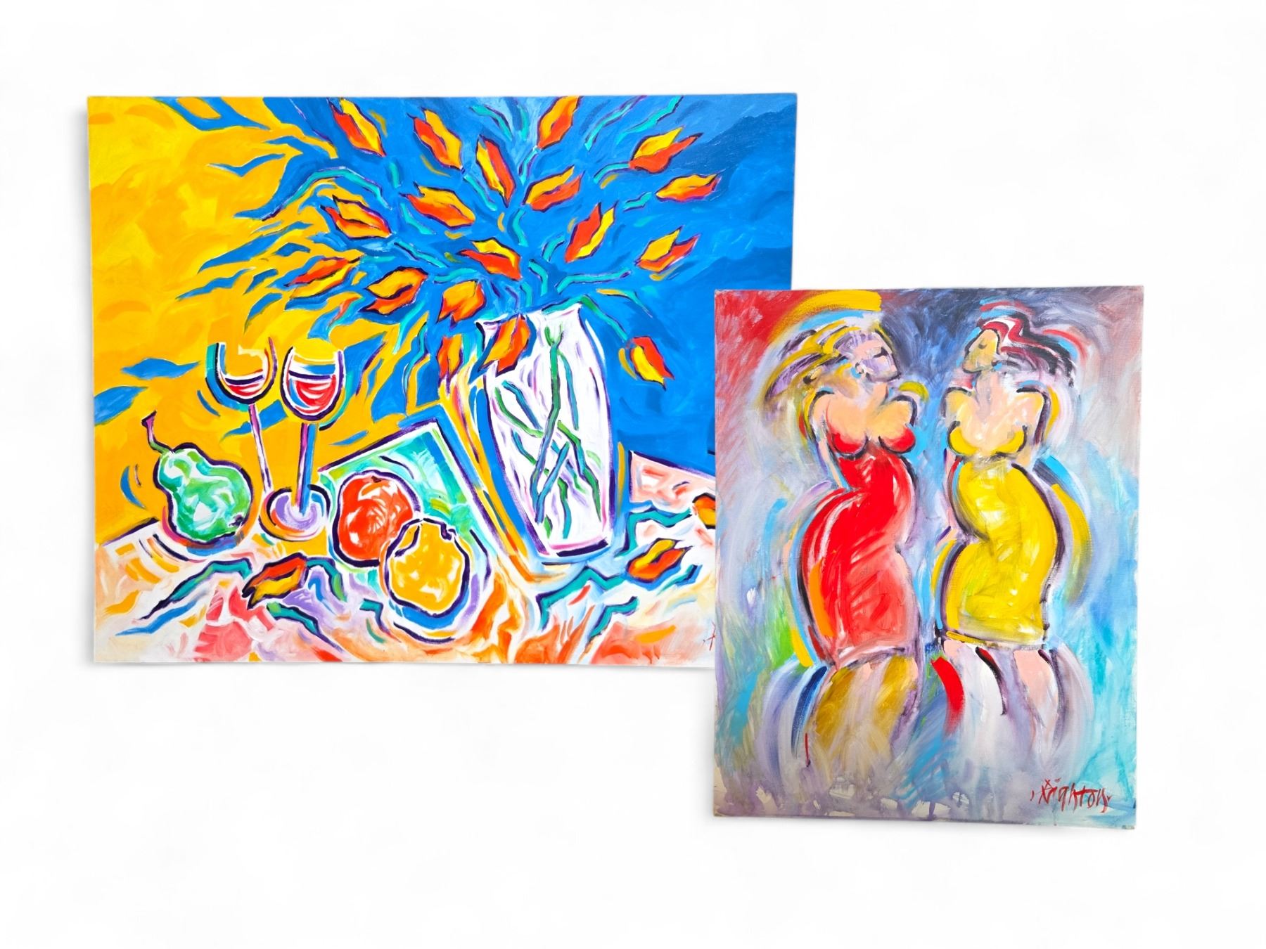 2 pc - Paintings on Canvas - Wine Glasses 48x40" / Women 24x29"