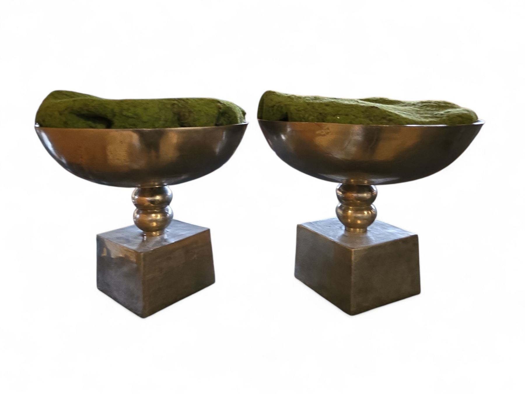 2 pc - Silver Pedistal Bowls - 16x14.5"