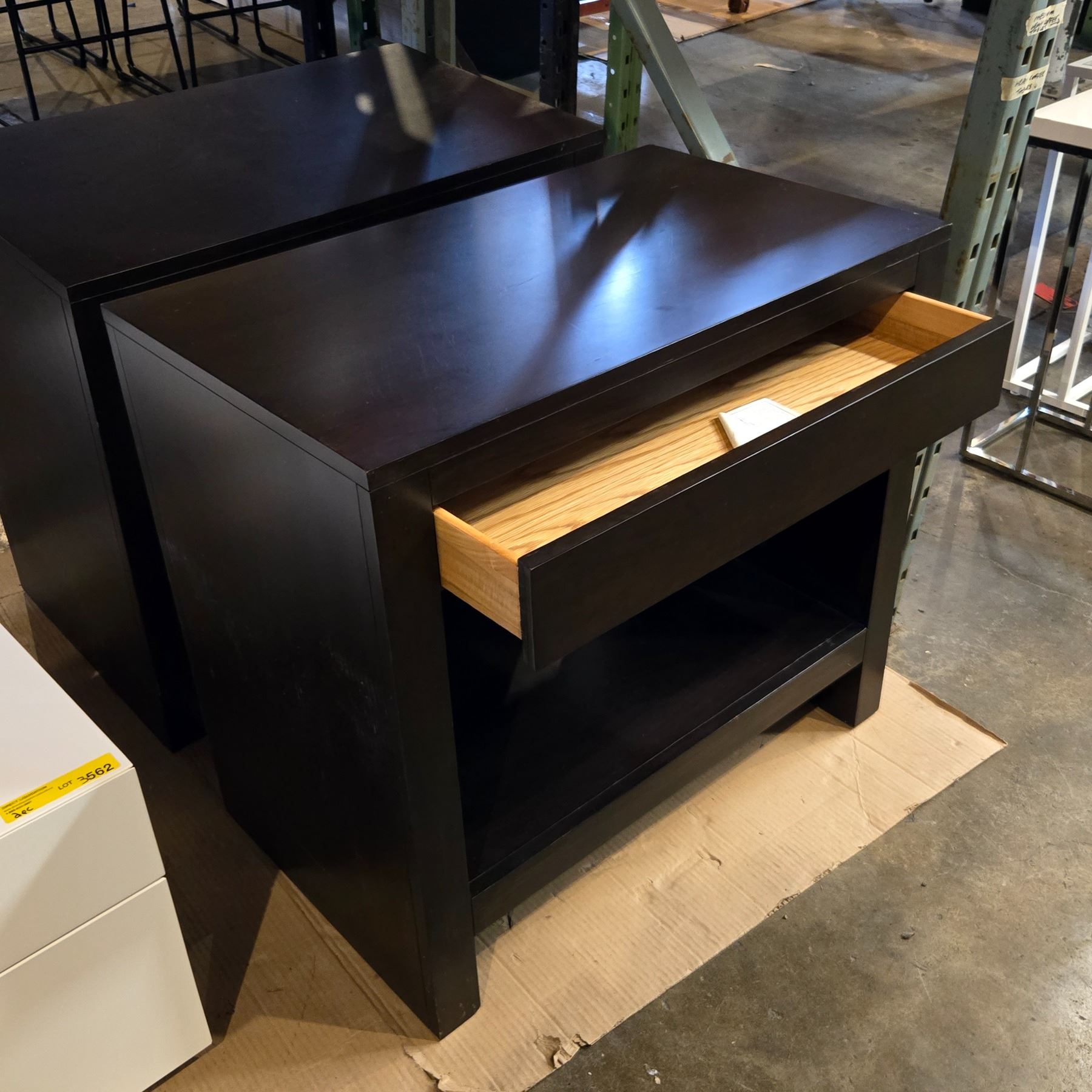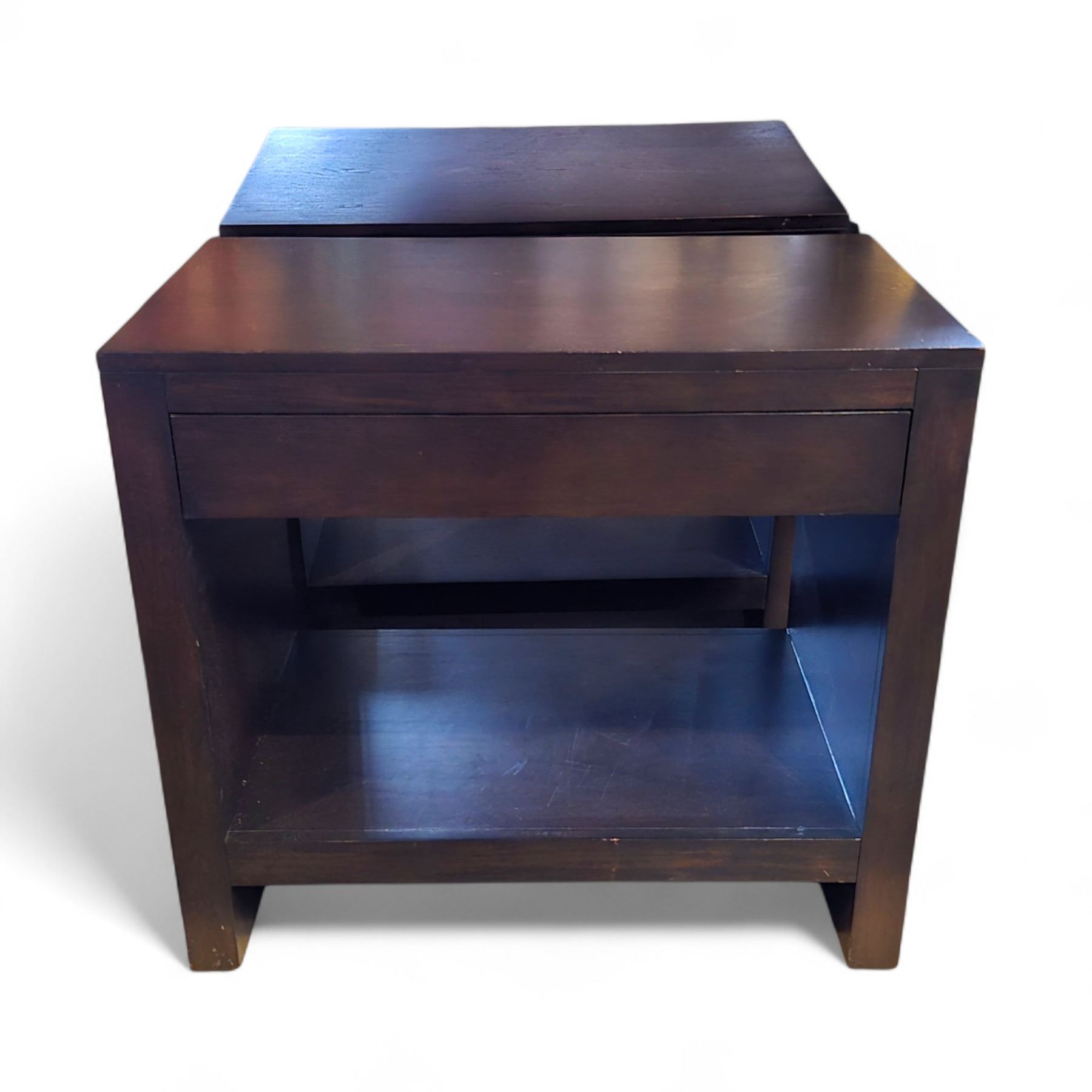 2 pc - Single Drawer Dark Brown Wood Bedside Tables - 31x18.5x28"