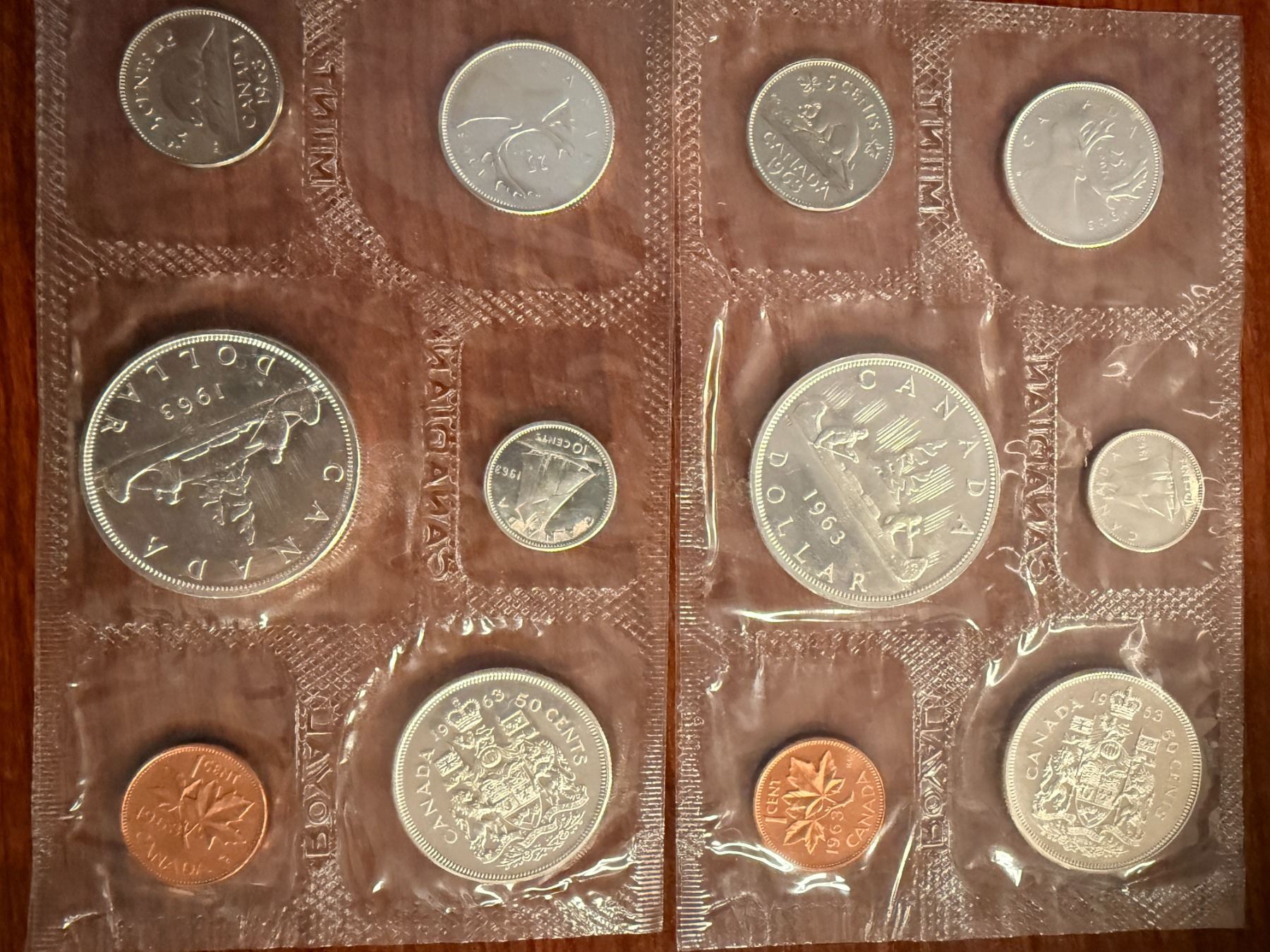 2 pc - Uncirculated Canadian 1963 Silver Proof-Like Collector Set (x6 Coins / Set)