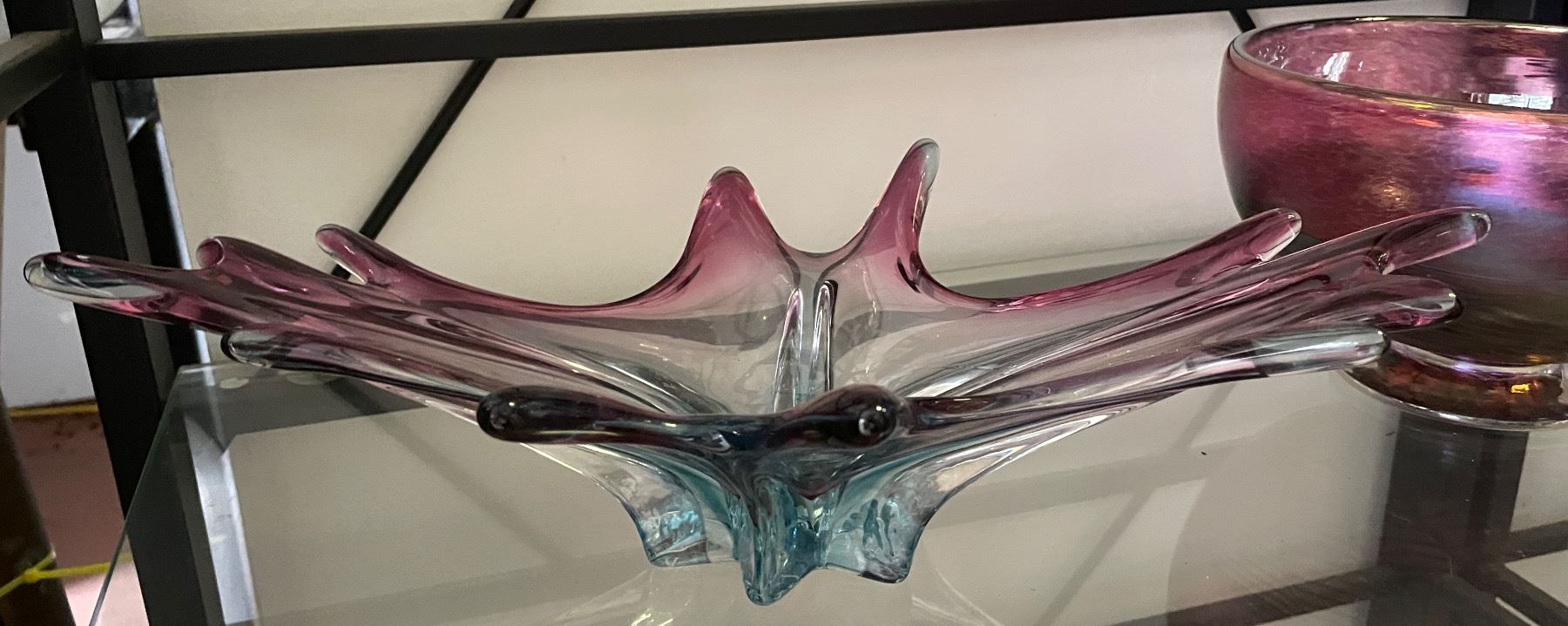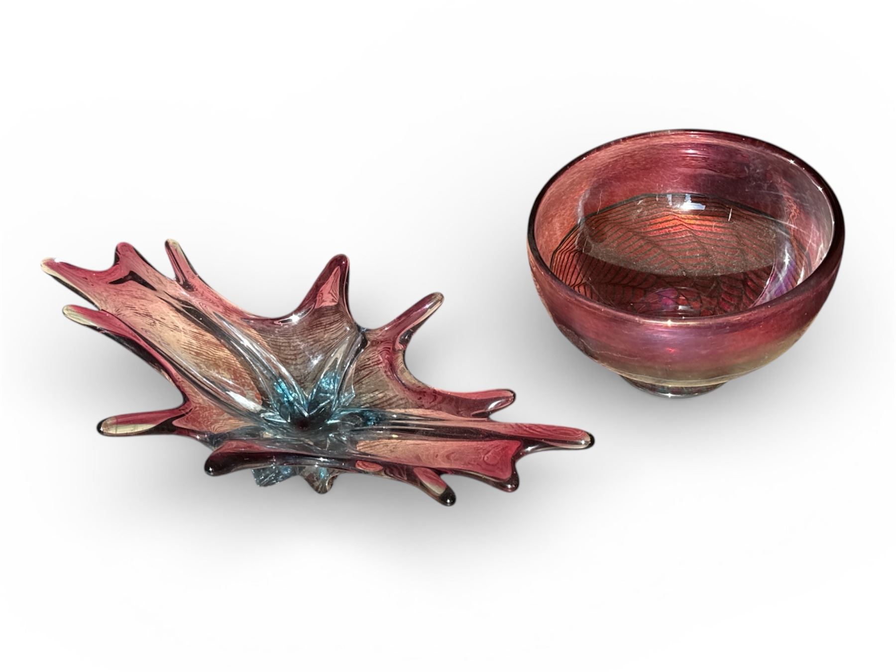 2 pc - Vintage Art Glass Bowls - Spiderweb & Splash Designs