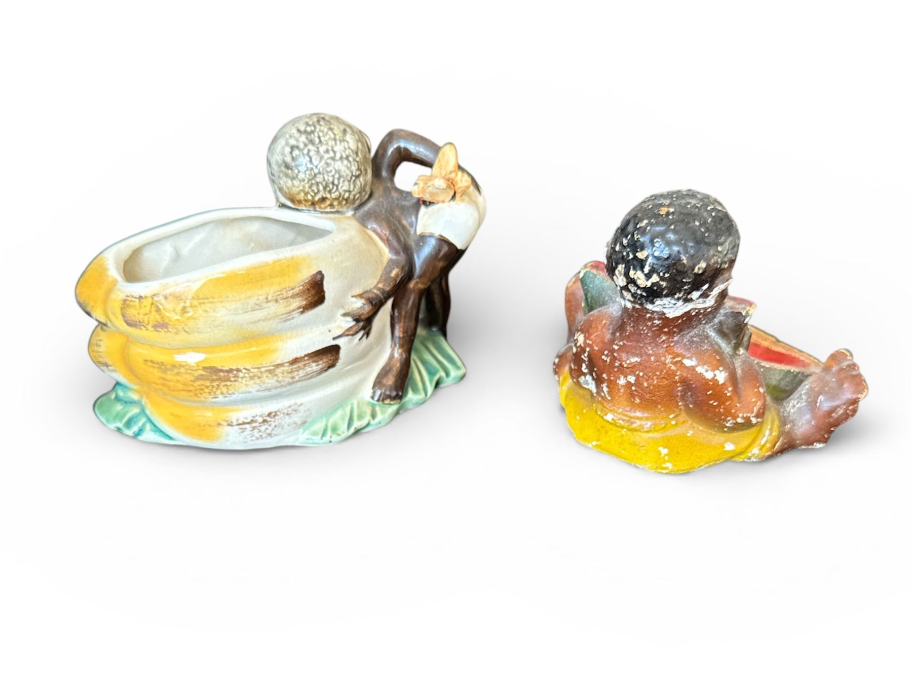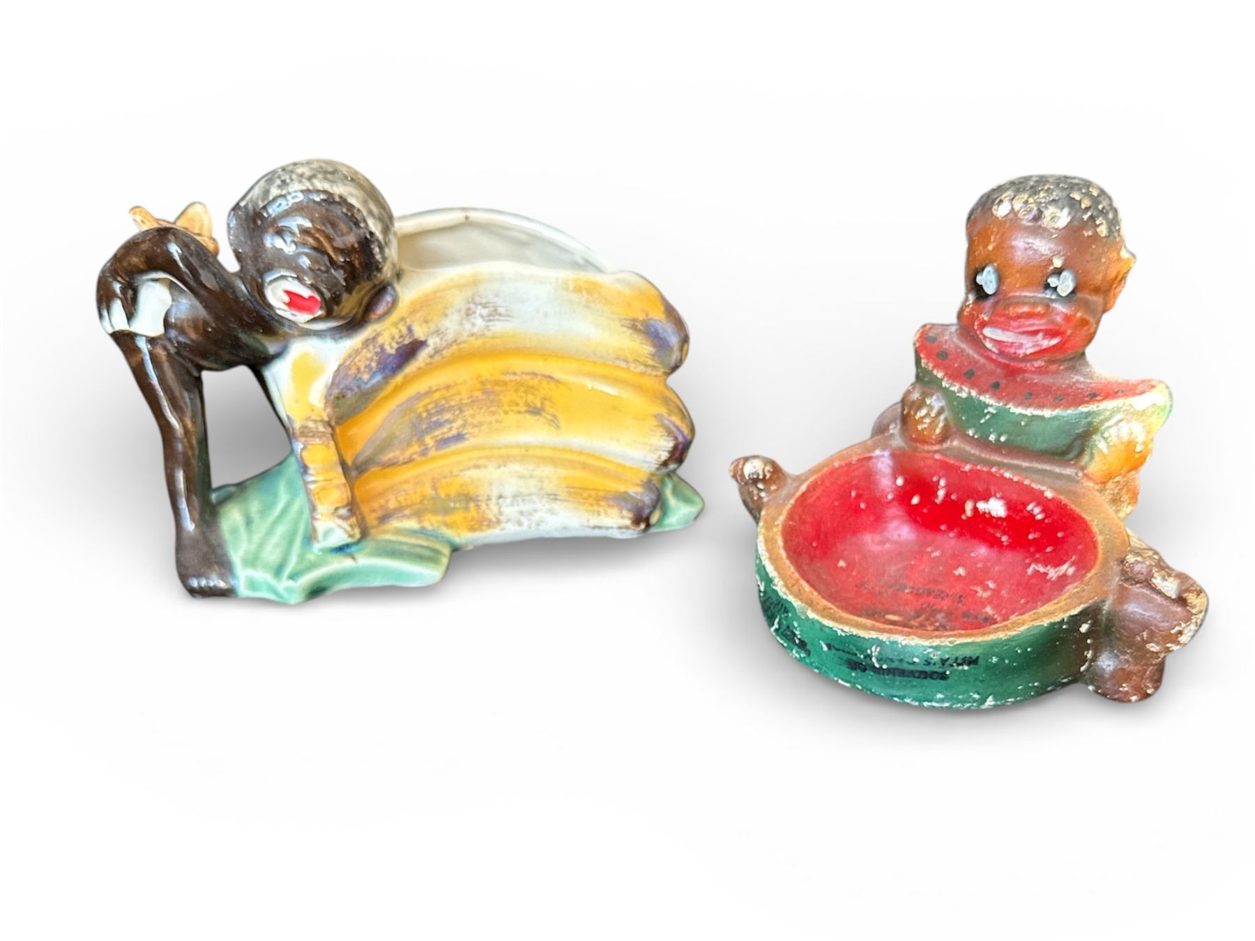 2 pc - Vintage Black Americana Ash Trays - Shafford & "Nita's Candy Shop - Bay St. St. Louis"