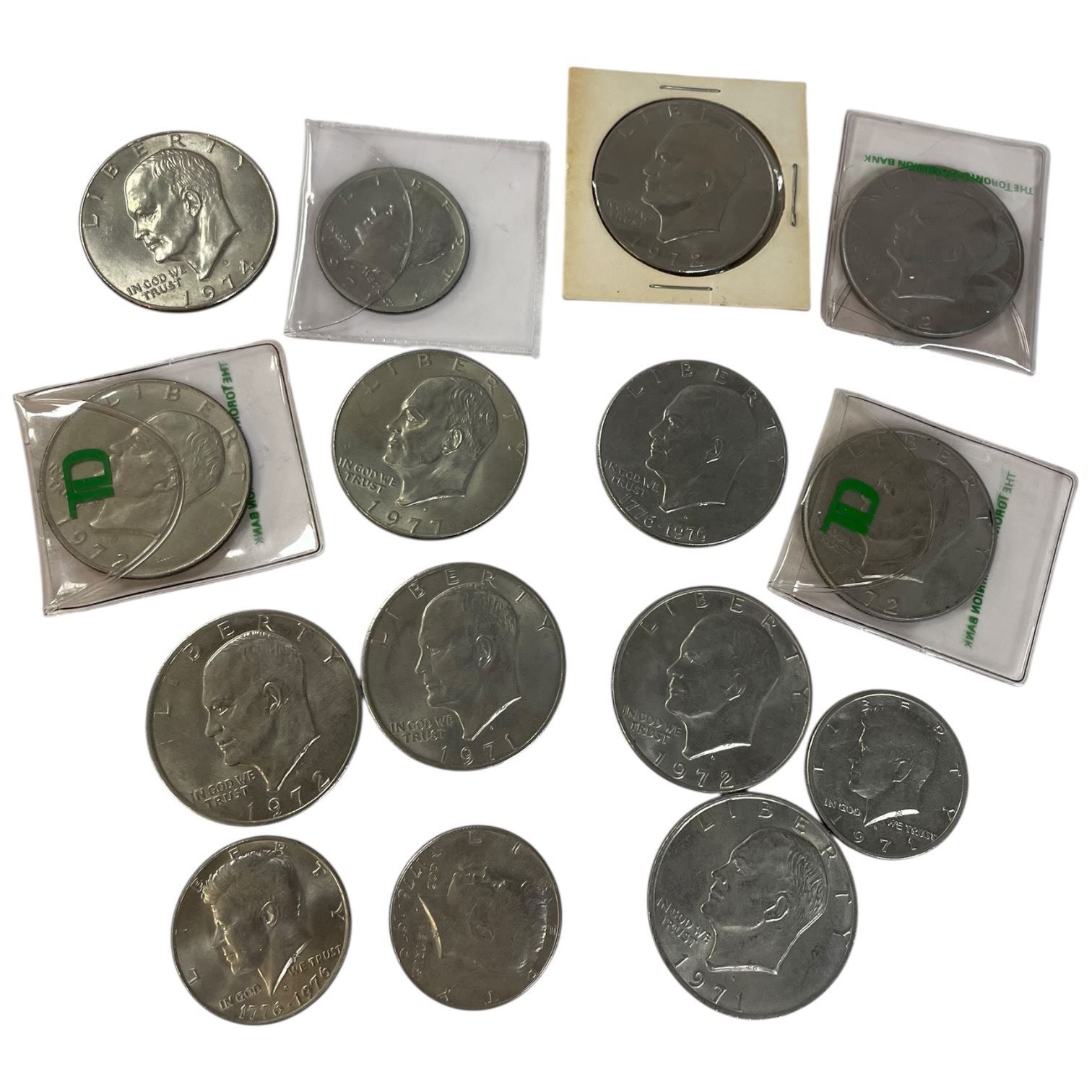 2 x 1971 & 9 x 1972 US Eisenhower Dollar Coins & 4 Kennedy Half Dollars* All Circulated Denver Mint