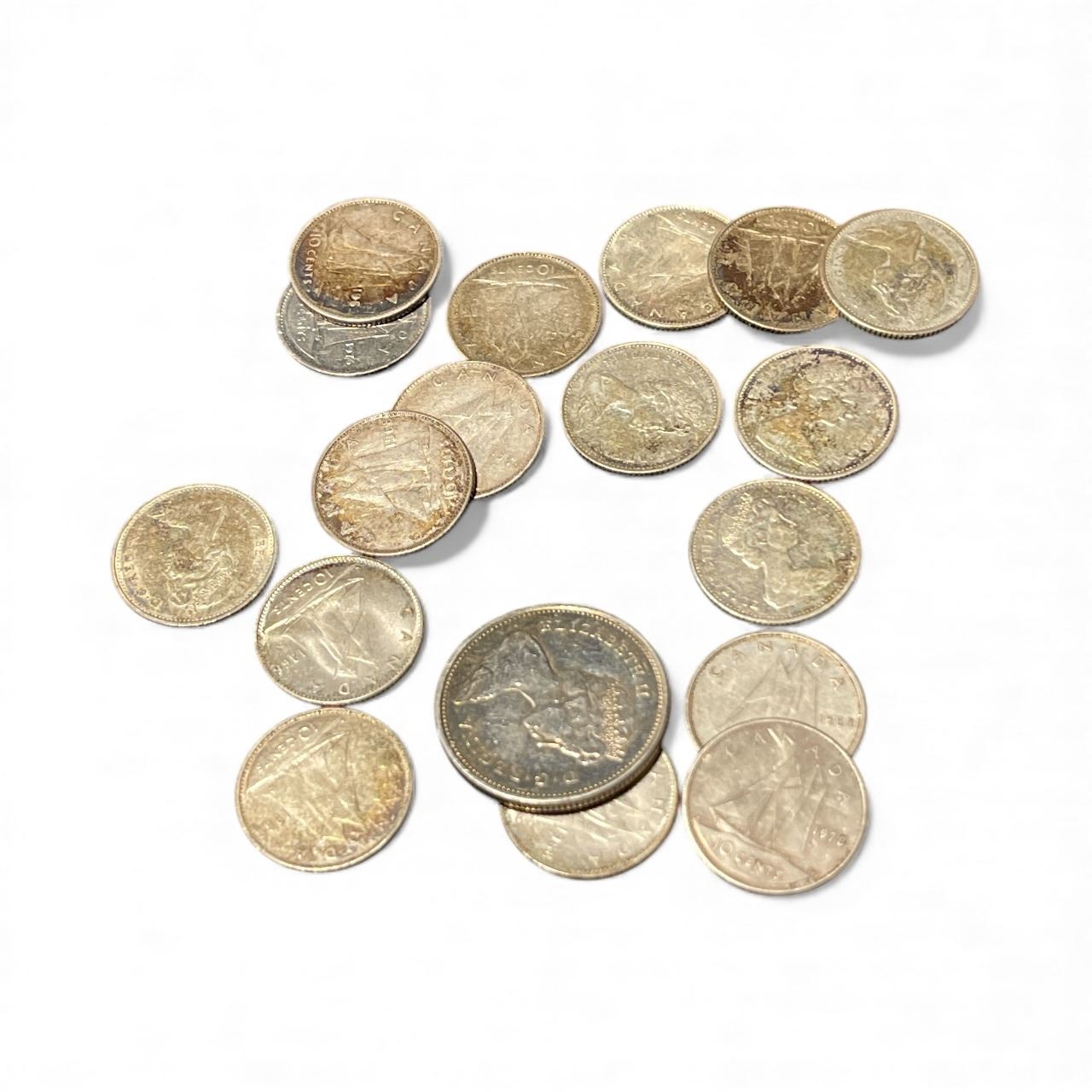 20 Canadian 1968 Silver Dimes -Mix of 50% and 80% Silver - Circulated