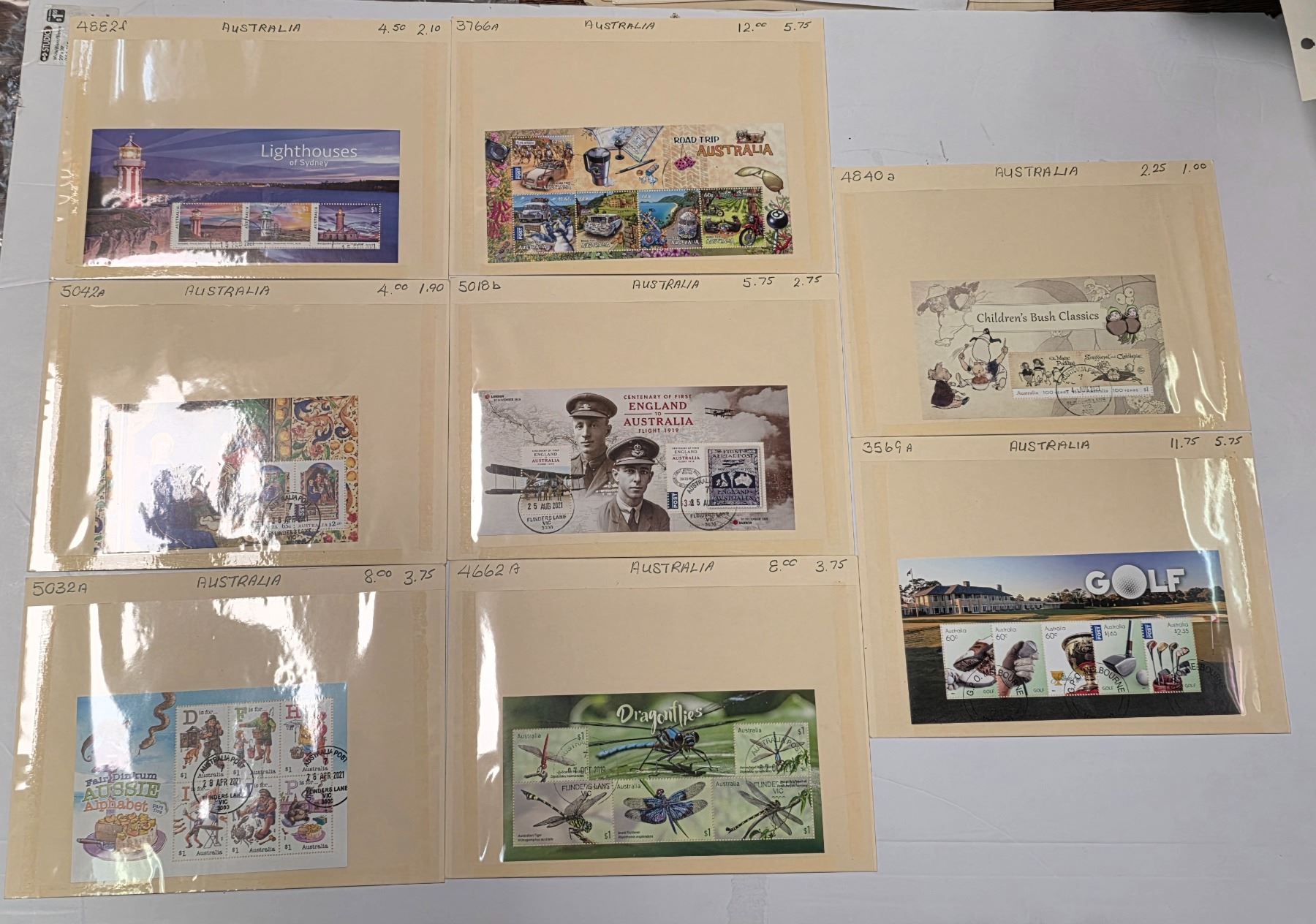 20+Pages & 8 Mint Souvenir Sheets of Australian Stamps * Majority of the pages are used