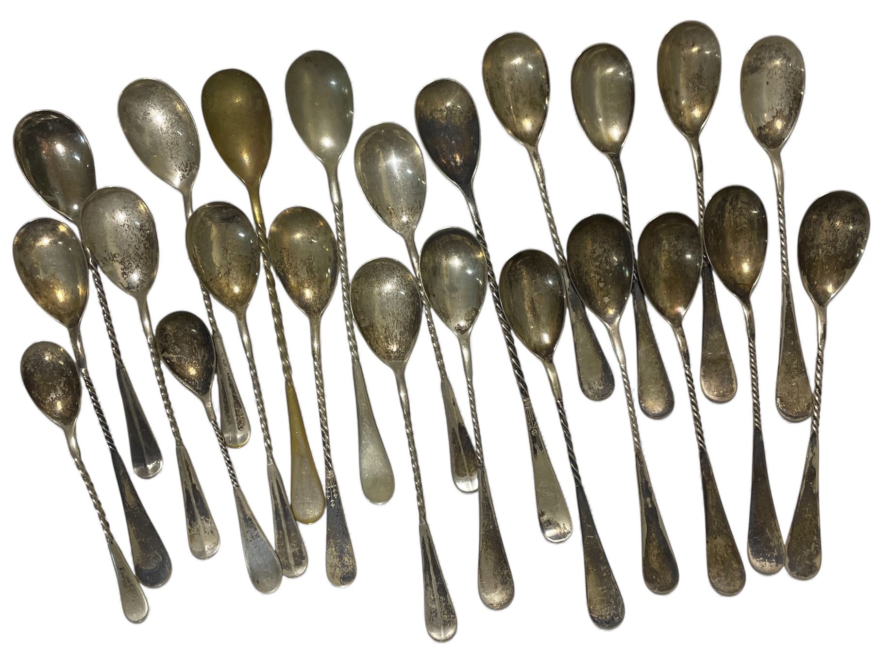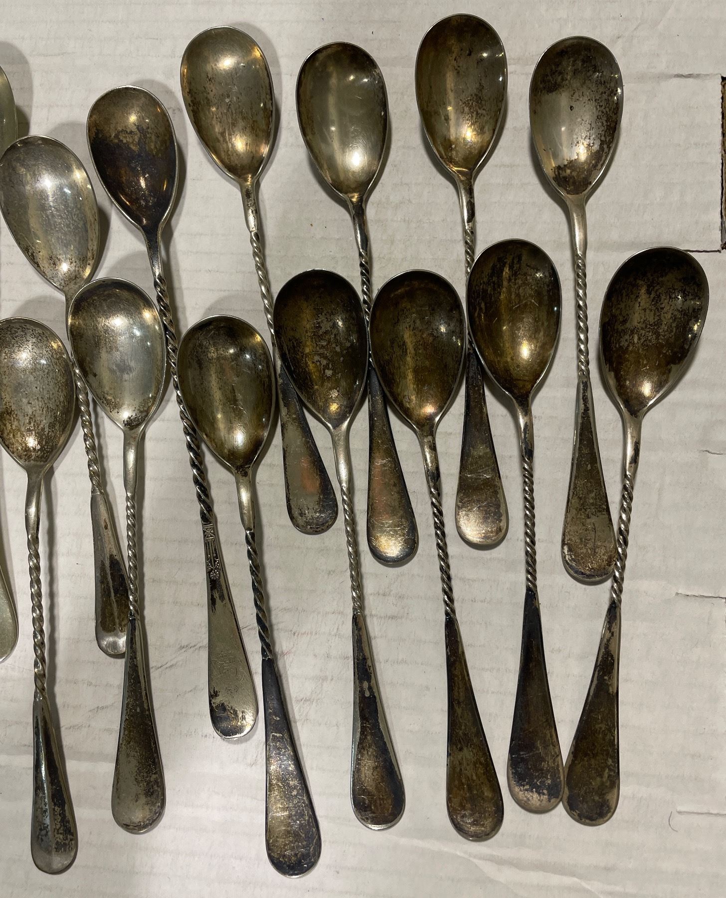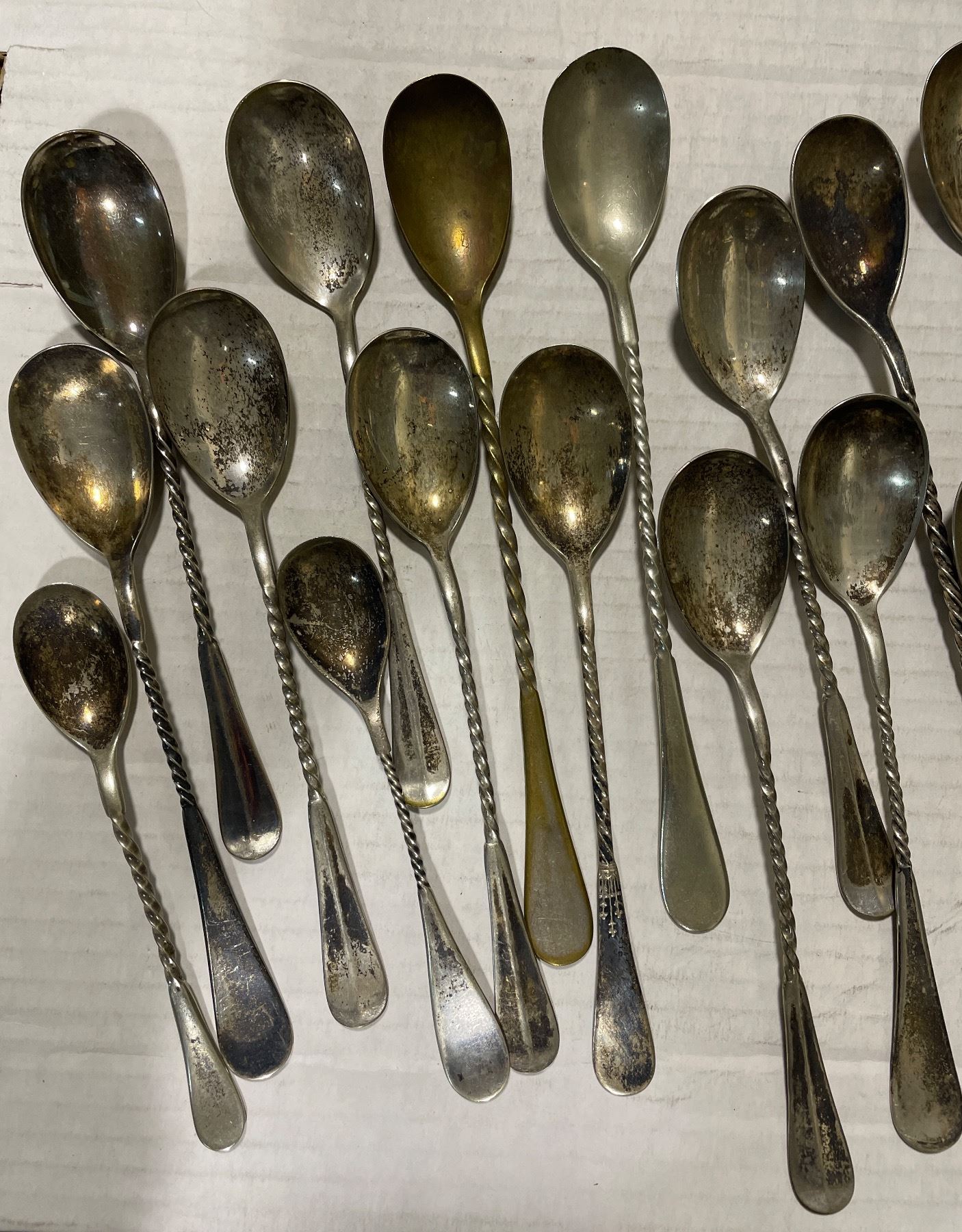 20+ Vintage Twist Handle Soda Shop & Demitasse Spoons - Variety of Silver Companies - Believed to be Nickel Silver