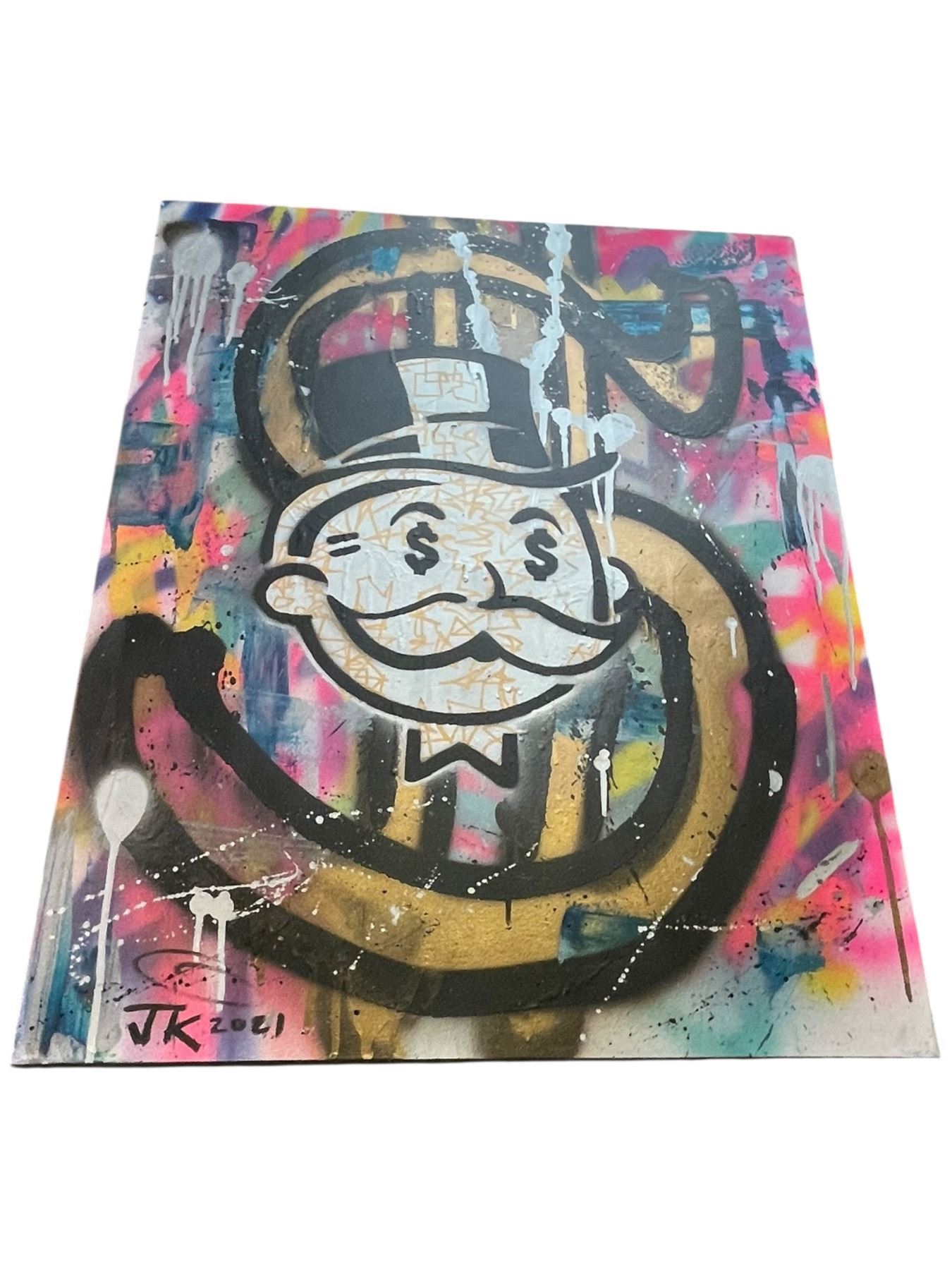 2021 Signed J. K. Graffiti Style Painting on Canvas of "Mr. Monopoly" (24" x 30" stretched canvas)