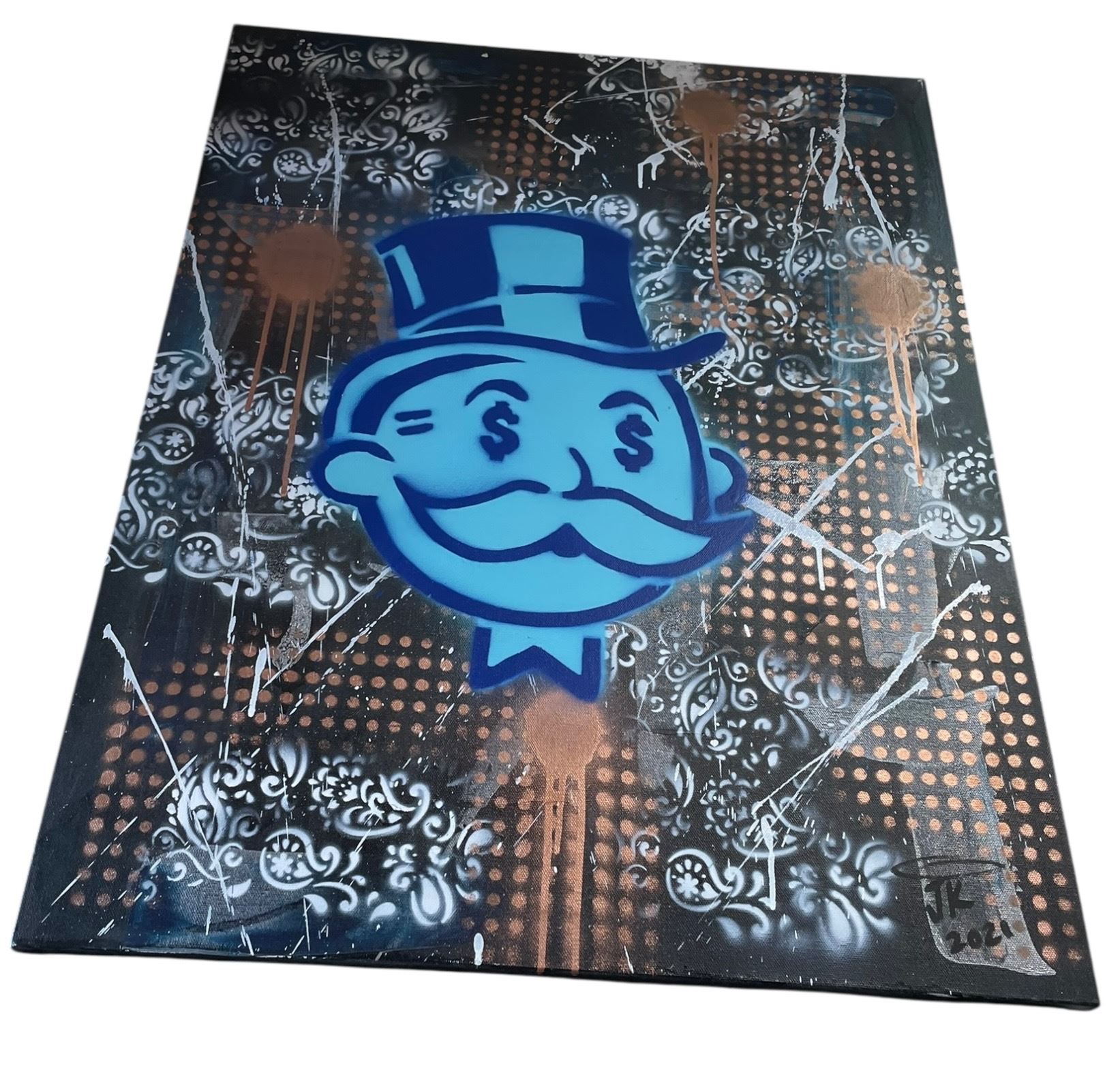 2021 Signed J. K. Graffiti Style Painting on Canvas of "Mr. Monopoly" (24" x 30" stretched canvas)