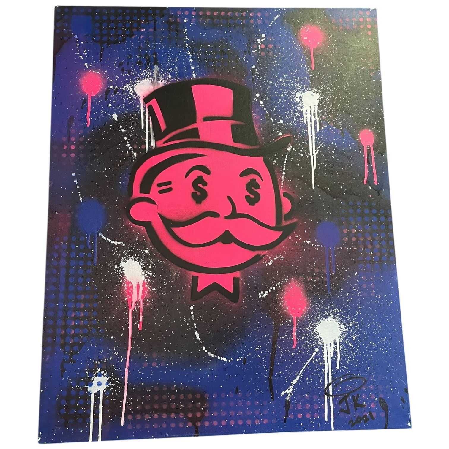 2021 Signed J. K. Graffiti Style Painting on Canvas of "Mr. Monopoly" (24" x 30" stretched canvas)