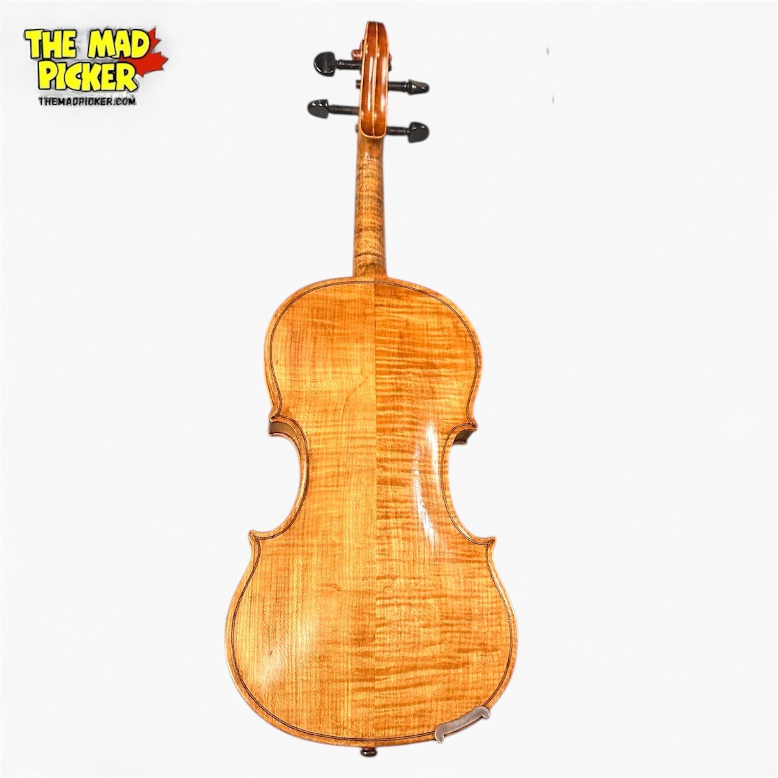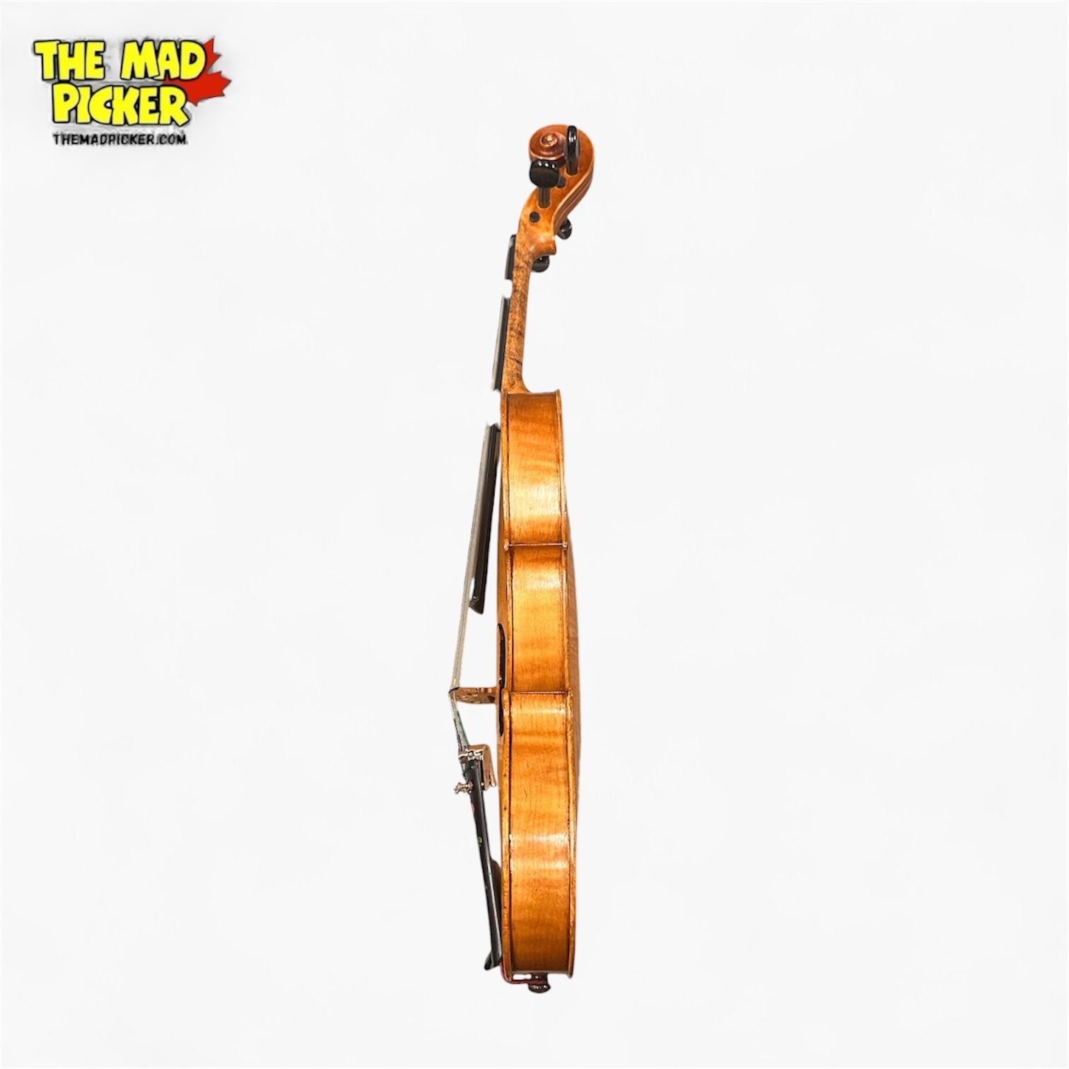 Stradivarius copy violin made in the 20th century. Includes accompanying bow and hardcase. Likely a factory-made replica inspired by Antonio Stradivari's original designs. Item is as pictured.