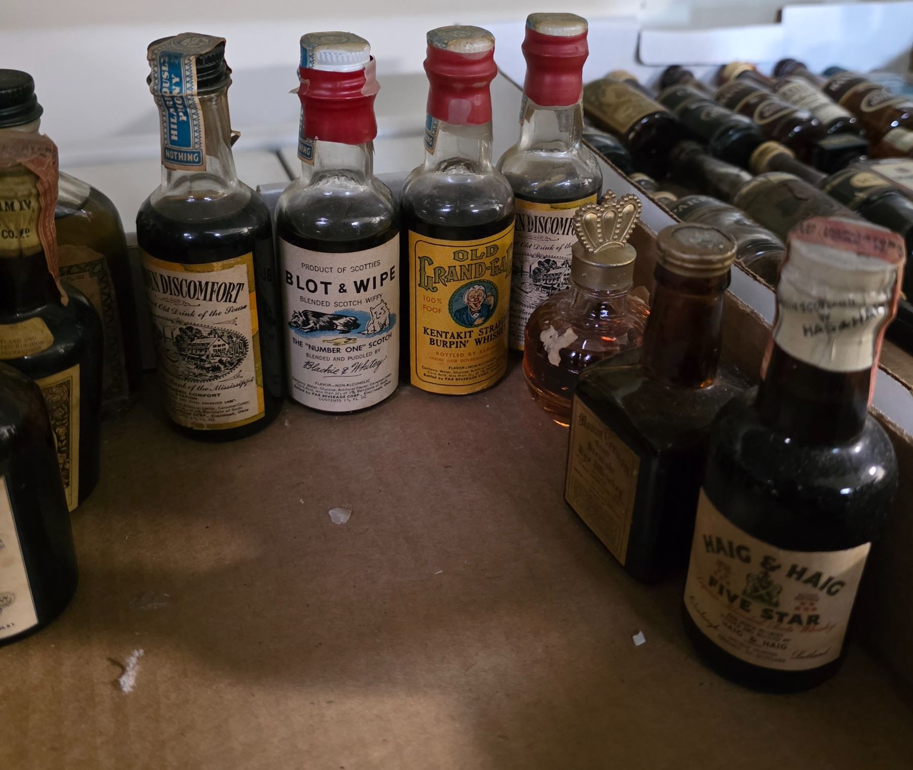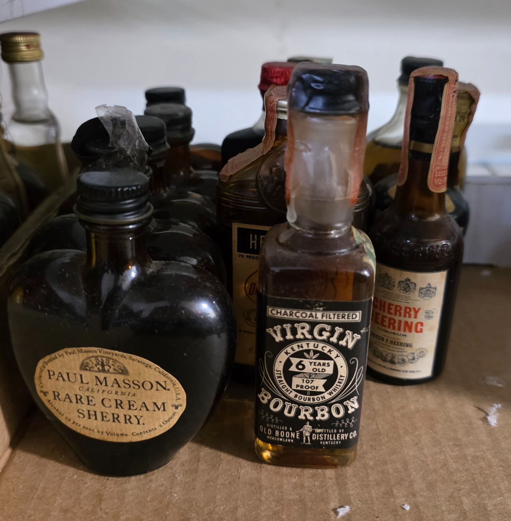 21 Vintage Whiskeys, Southern Comfort & Other Liquors in 50ml Glass Bottles - Majority of the bottles are sealed with some evaporation