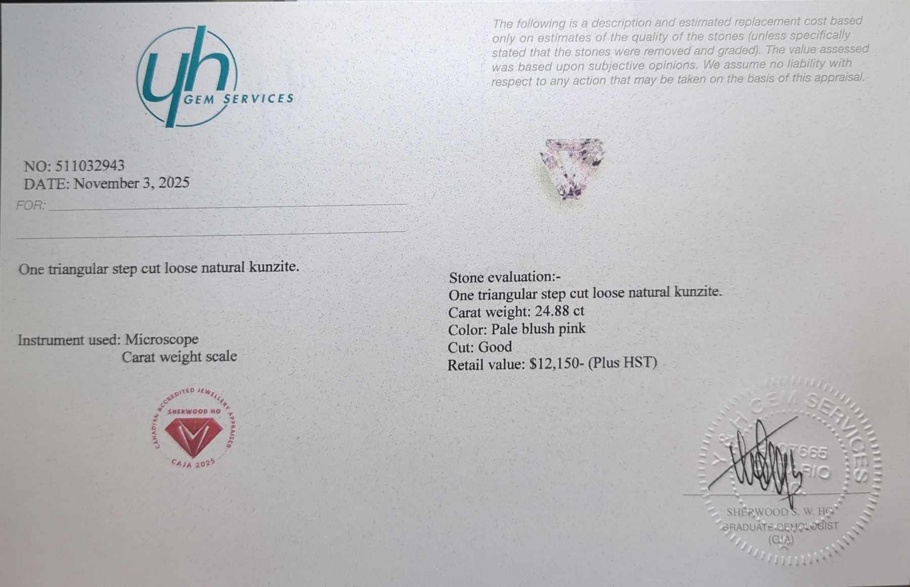 24.88 ct Certified Pink Kunzite gemstone ($12,150 Appraisal)
