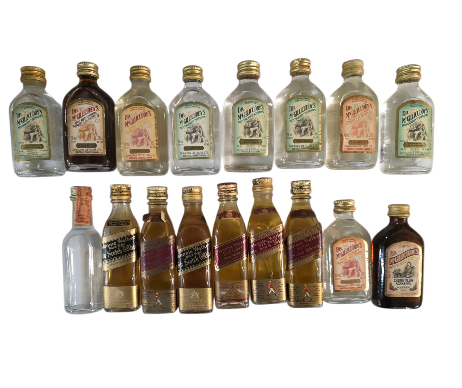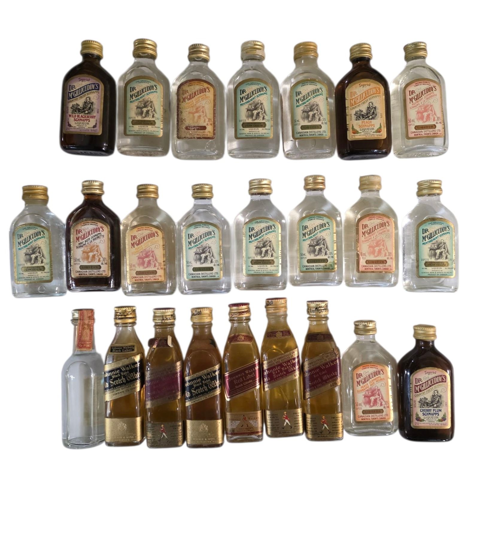 24 Miniature Empty Liquor Bottles - Featuring Dr. McGillicuddy's Flavors and Other Notable Brands