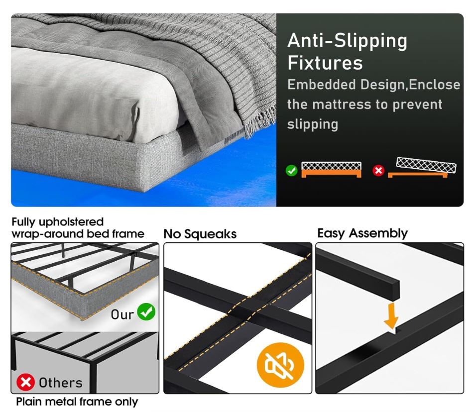 26.9cm High King Floating Bed Frame with LED Lights - RV: $250 CAD