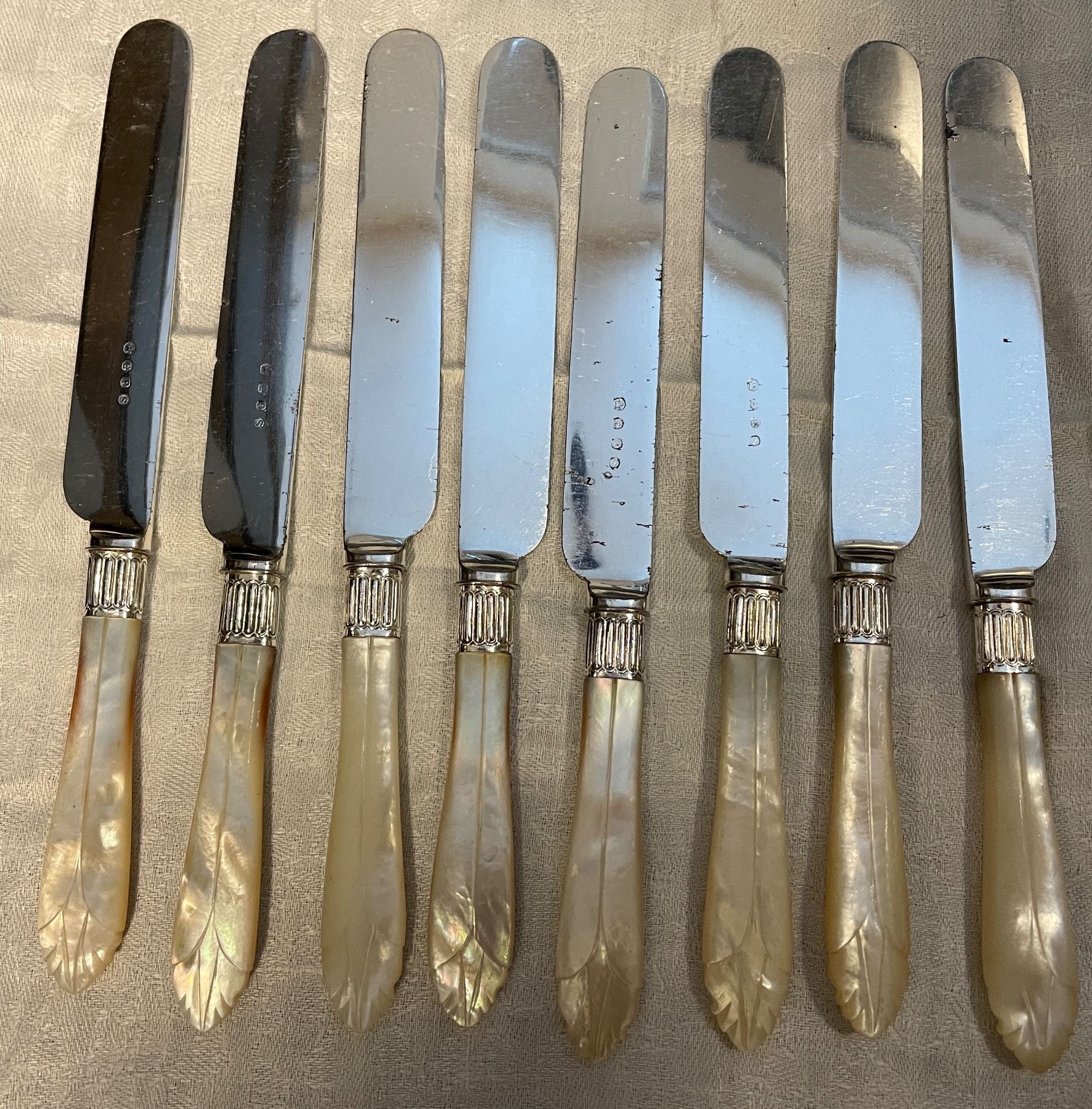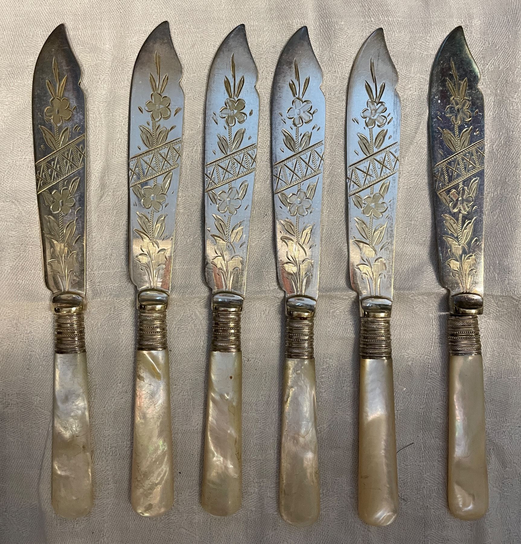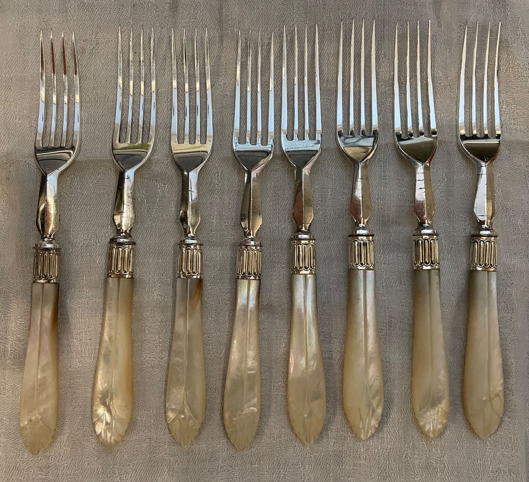 28 Antique Mother‑of‑Pearl Handled Flatware Lot, Includes Engraved Fish Knives, Knives and Forks