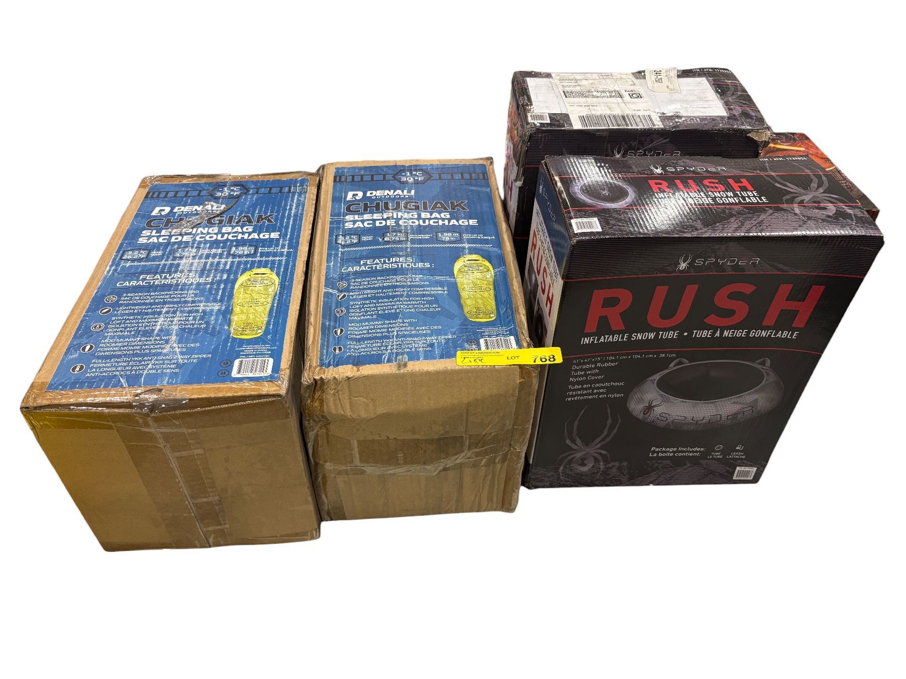 2pc Denali sleeping bags & 2 pc Rush snow tubes