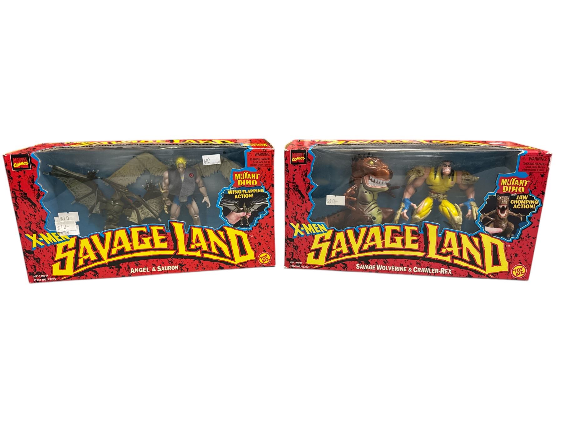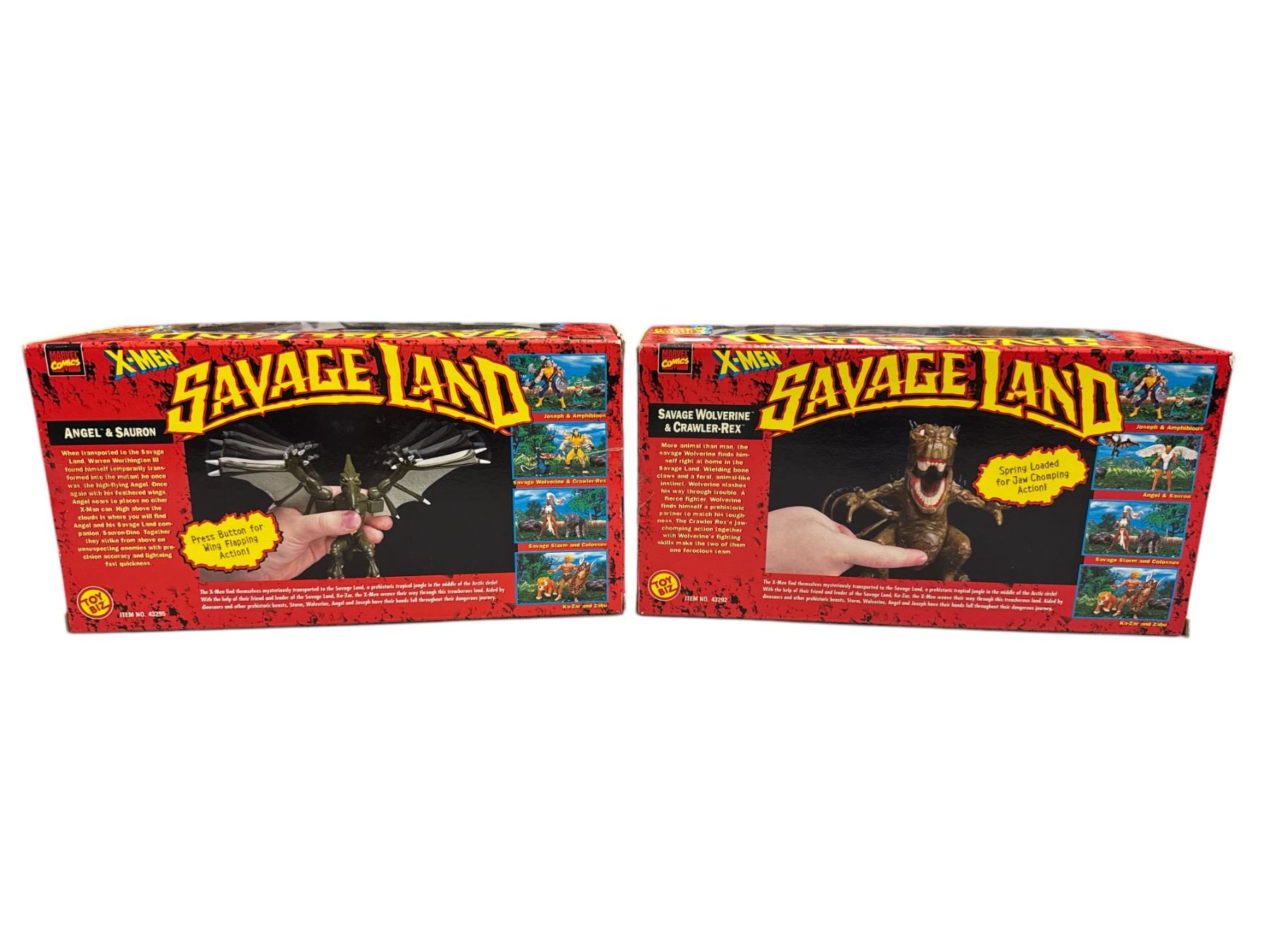 2x 1997 Sealed X-Men Savage Land Toys: Savage Wolverine/Crawler-Rex & Angel/Sauron