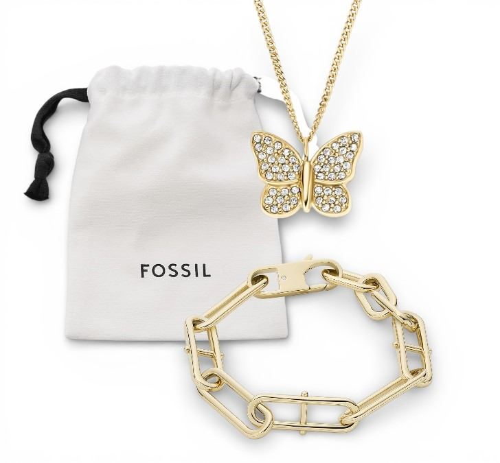 2x New Fossil Women's Stainless Steel Gold-Tone Sadie Glitz Disc & Brown Leather Bracelet Retail $122