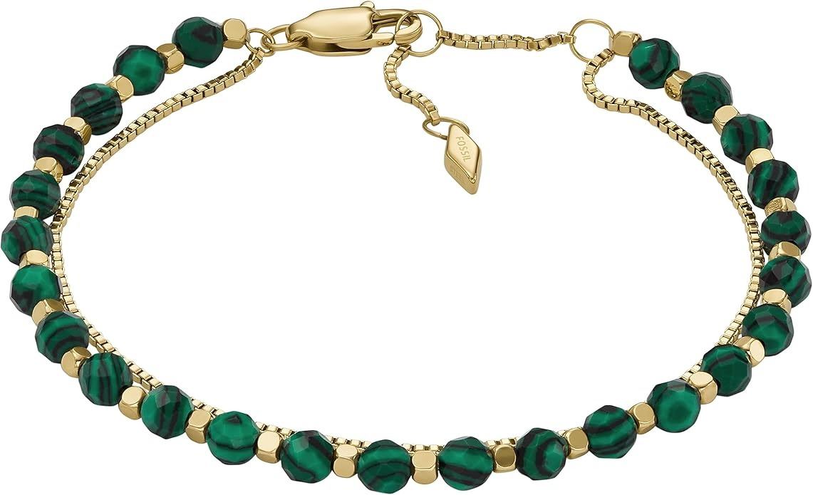 2x New Fossil Women's Stainless Steel Gold-Tone Sadie Glitz Disc & Brown Leather Bracelet Retail $122