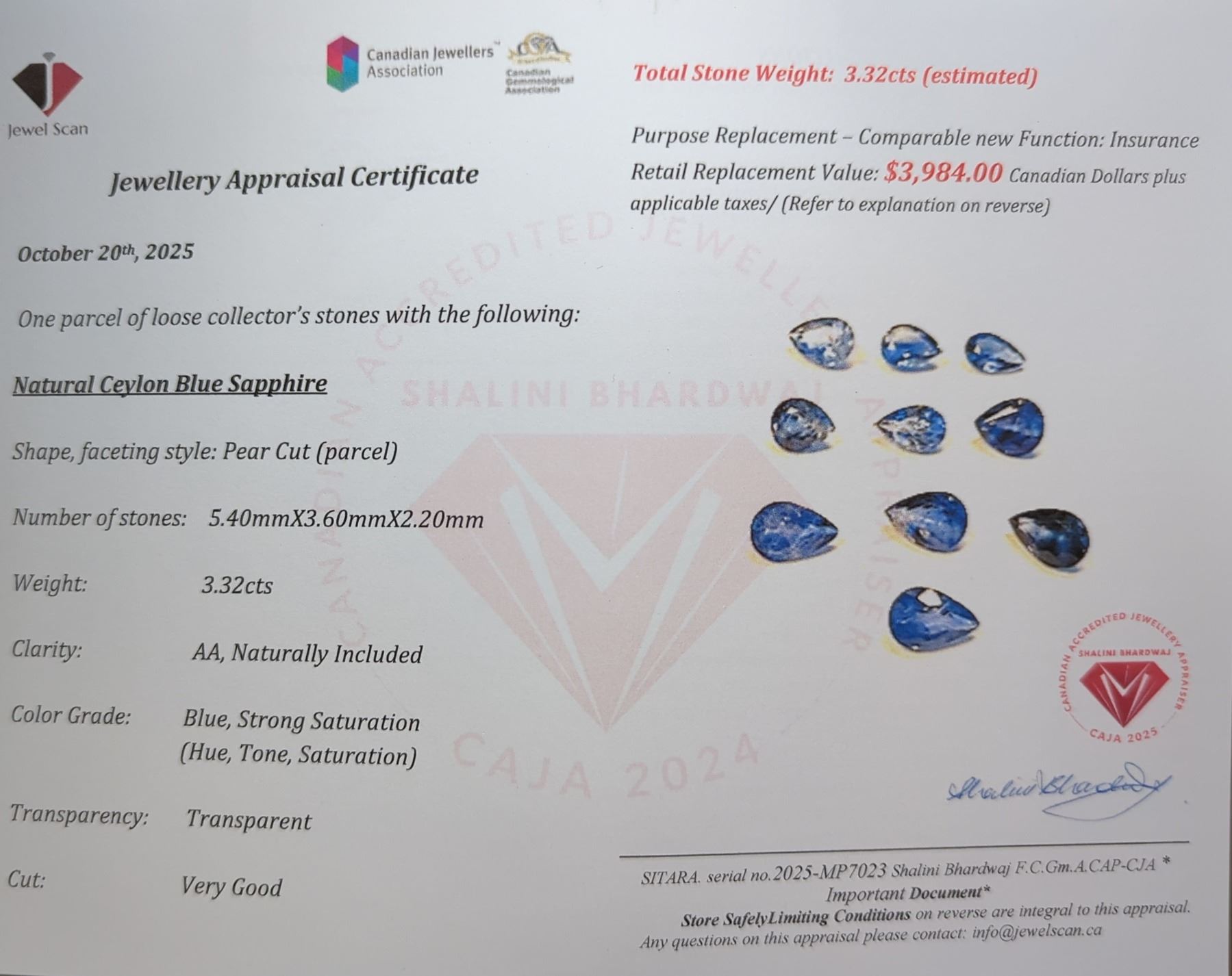 3.32 ct Certified Ceylon Sapphire gemstone Parcel ($3,984 Appraisal)