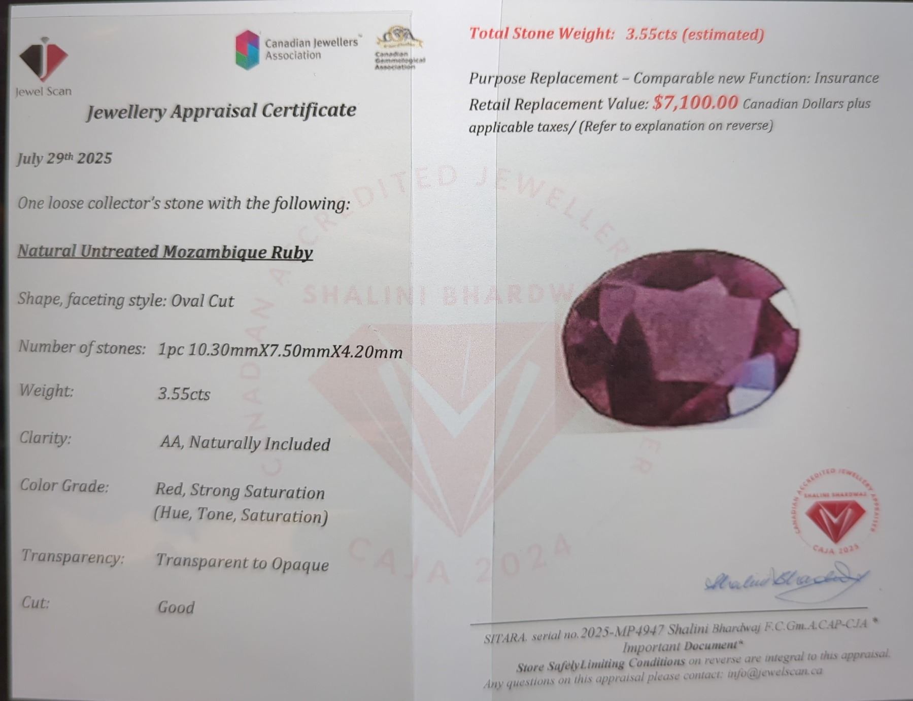 3.55 ct Authenticated Red Ruby gemstone ($7,100 Appraisal)