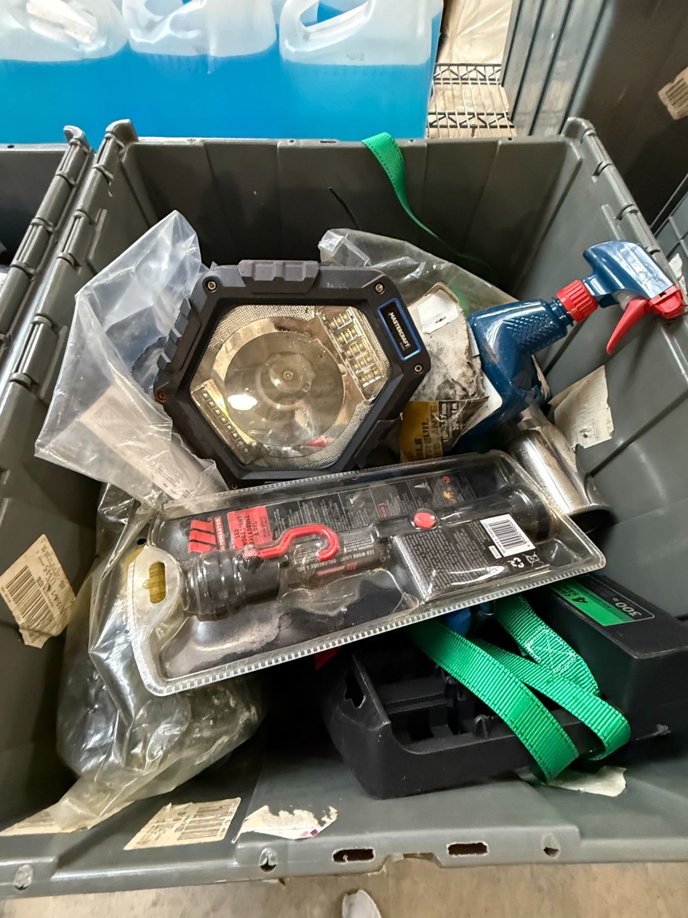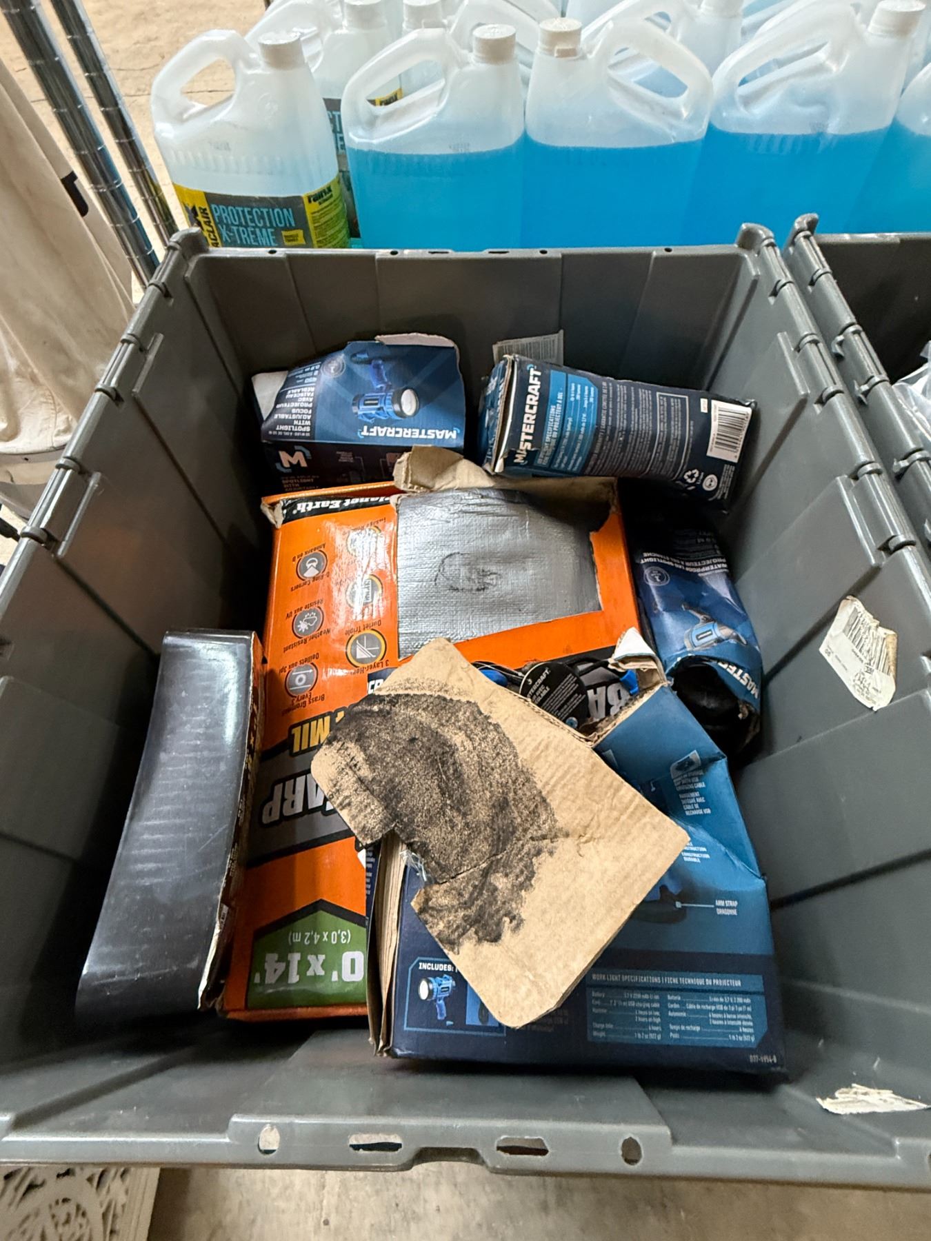 3 Bins - Lights, Tarp, Ratchet Straps, Trailer Locks & Wheel Jack, Etc.