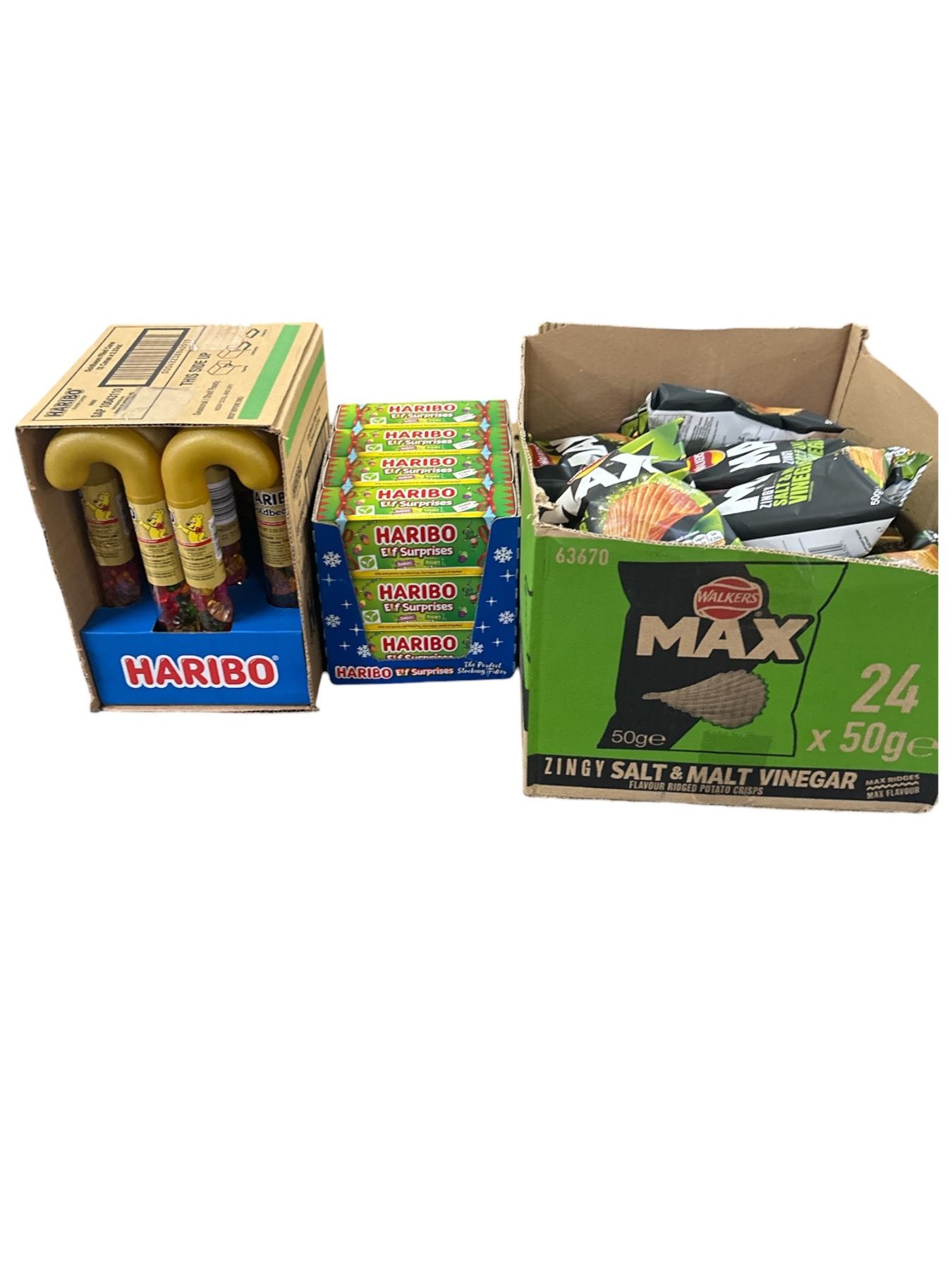 3 Boxes of Haribo Elf Surprise, Haribo Canes, & Salt & Vinegar Chips