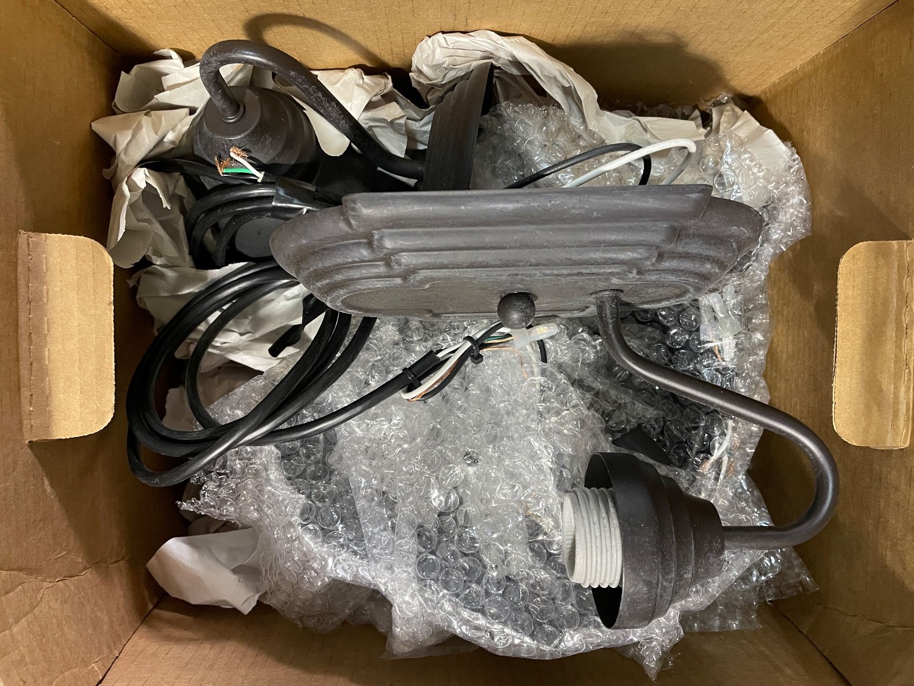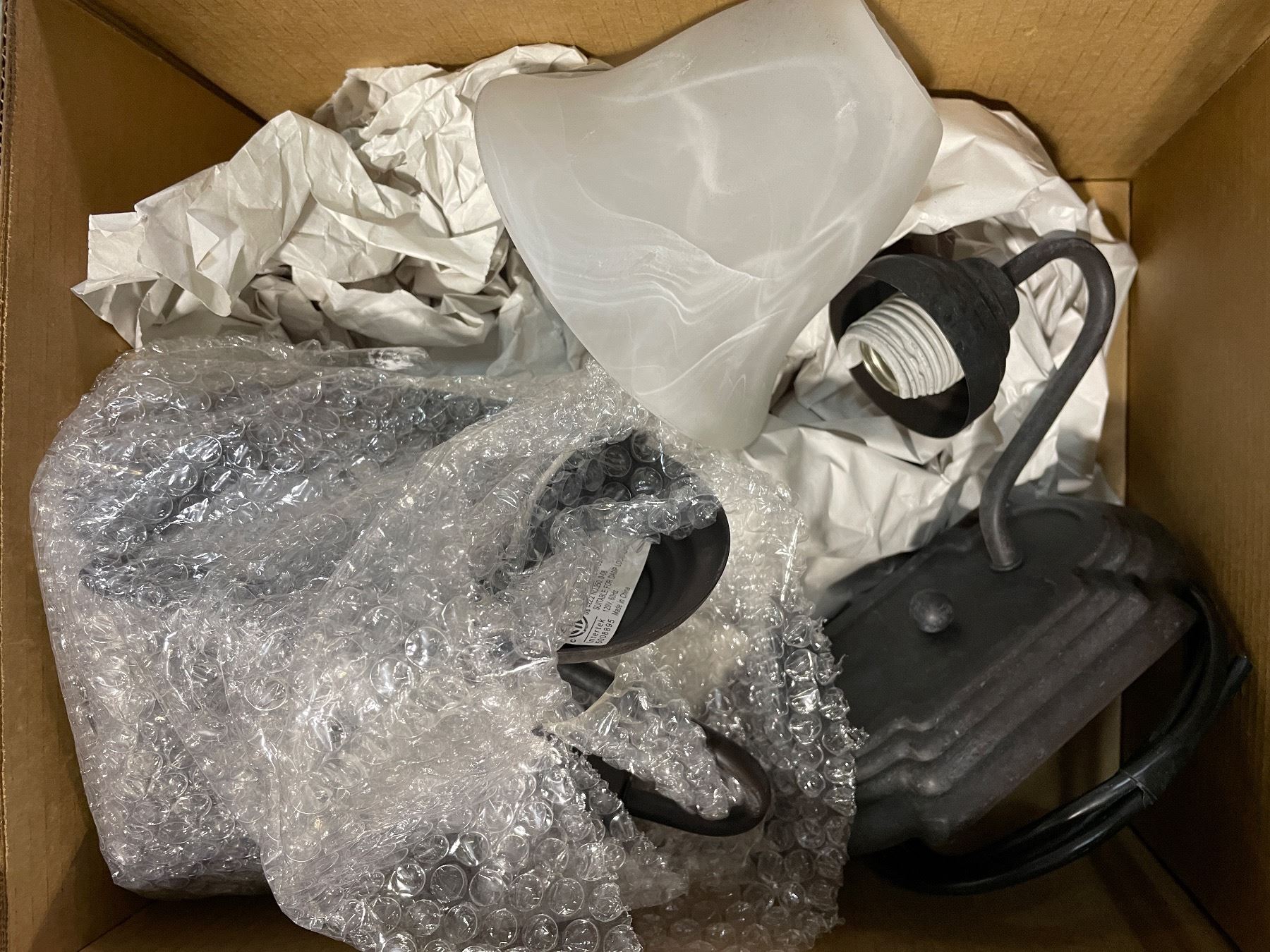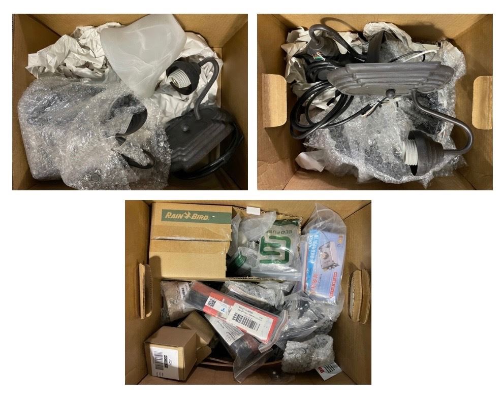 3 Boxes of Misc - Sconces, Door Sweeper, Door Bell, Iron Flip Latch, Etc.