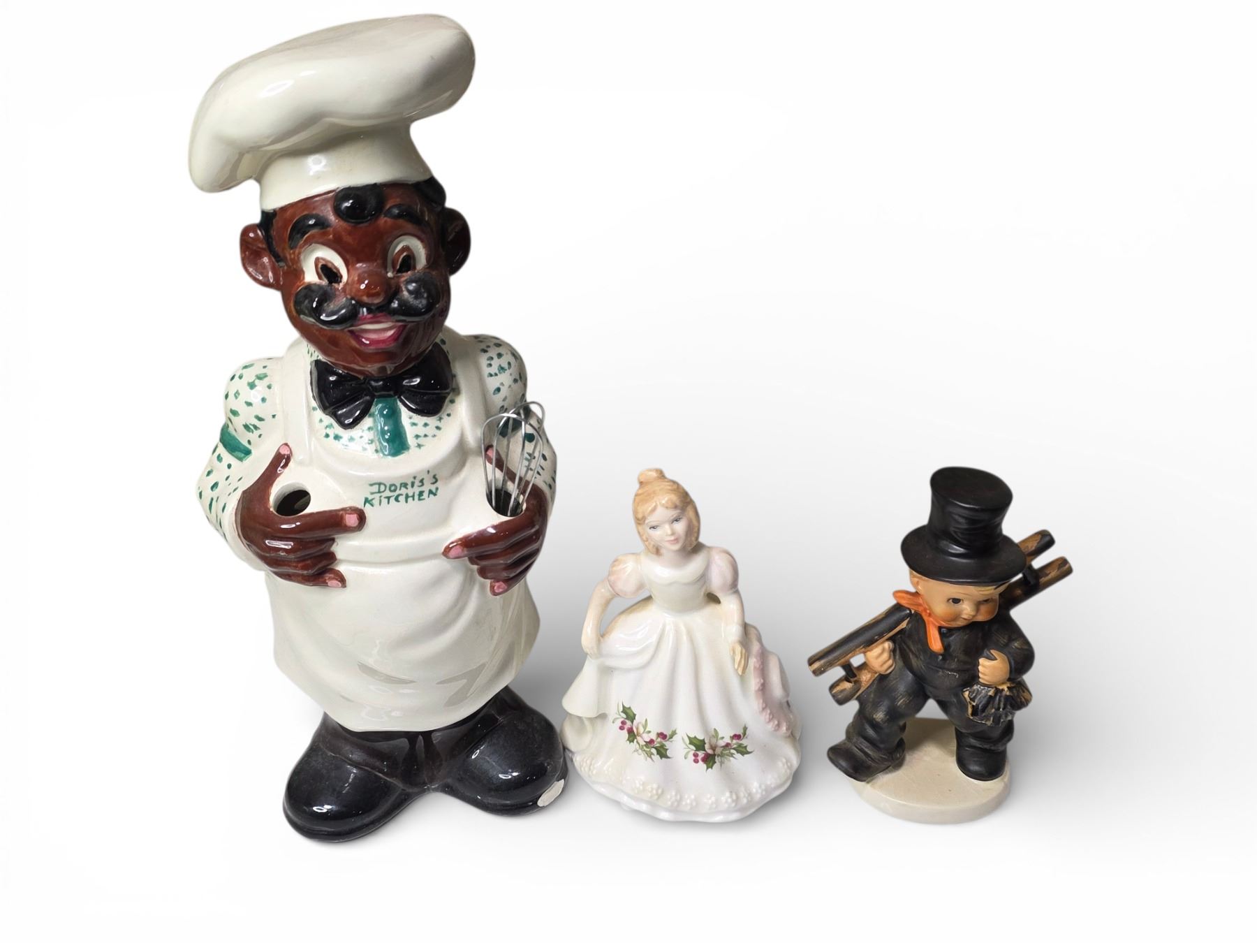 3 Collectible Figurines: Goebel "Chimney Sweep" (KF40), Royal Doulton FOM: December, 1977 Doris's Kitchen Chef