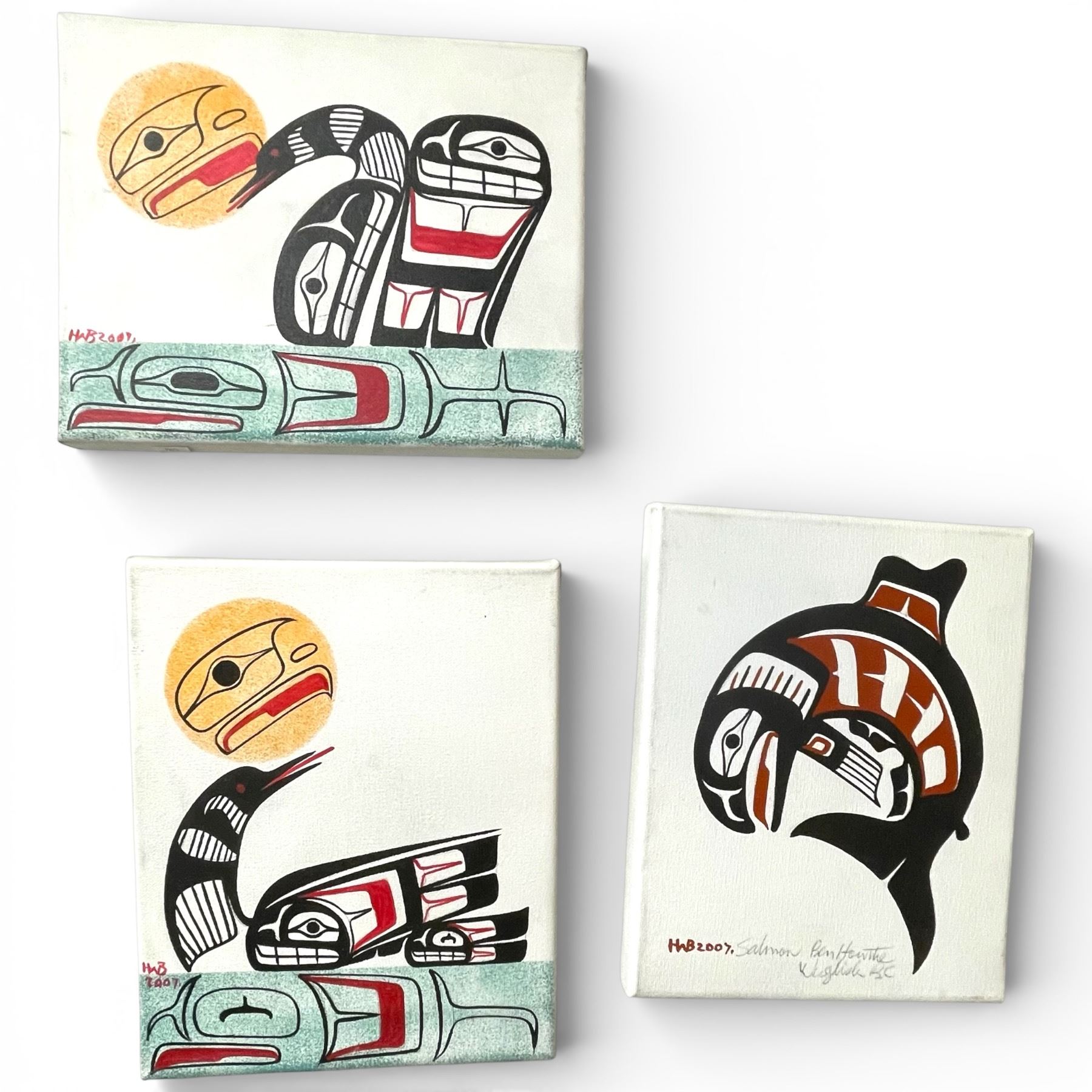 3 First Nation Design Canvas Wall Art * All are signed HAB 2007 (8" x 10")