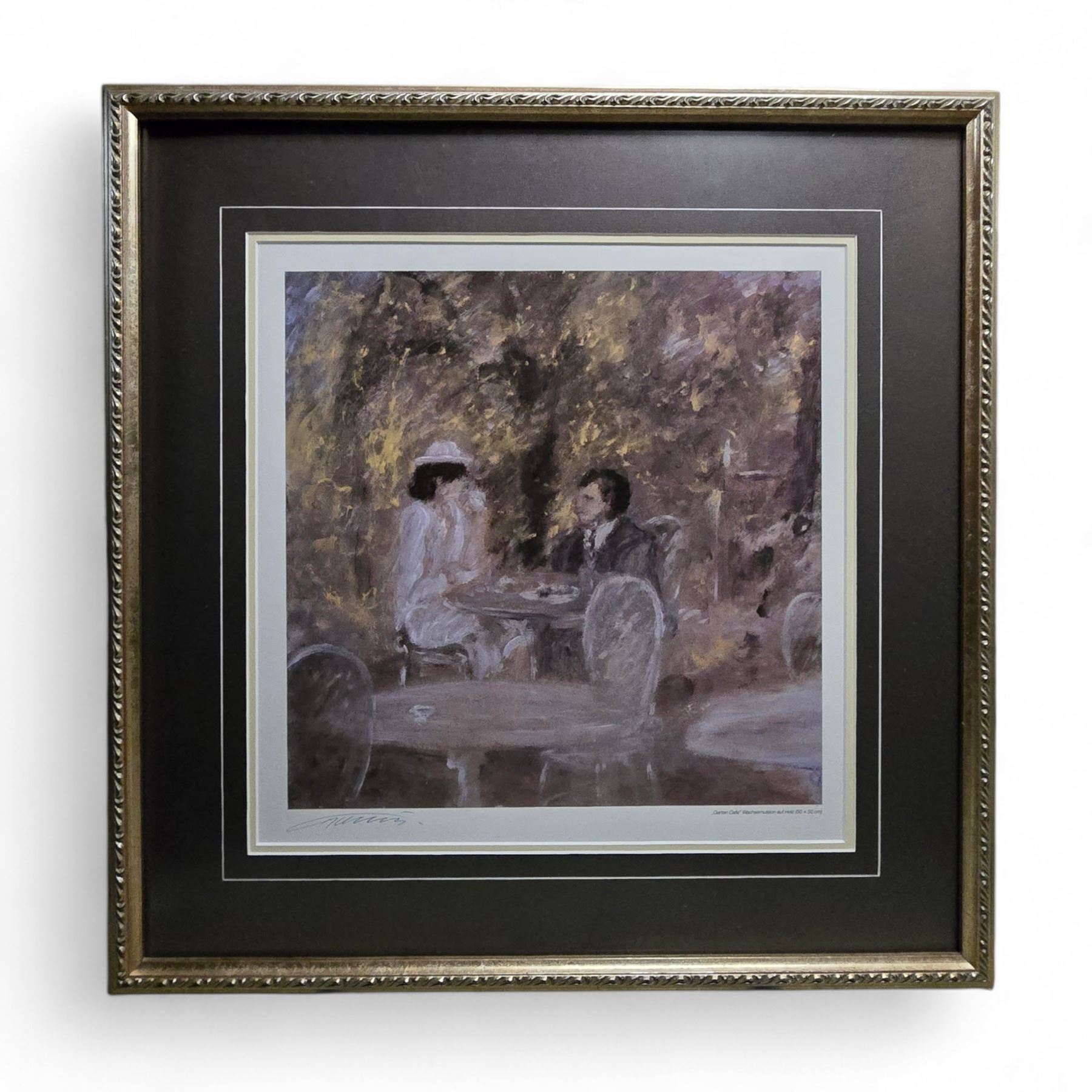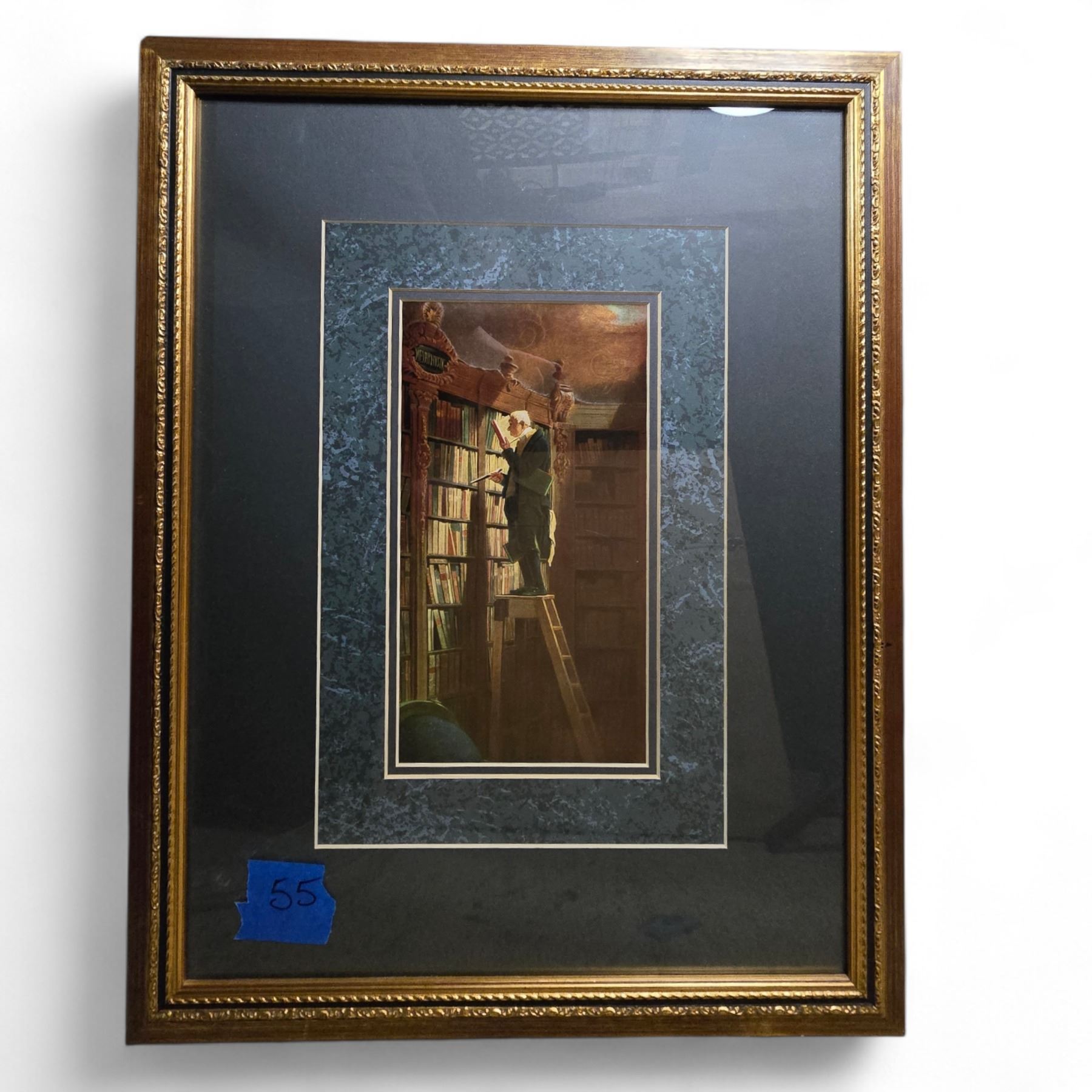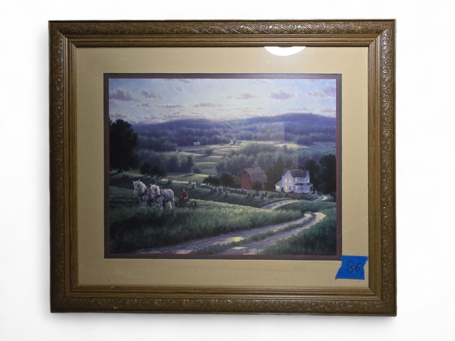 3 Framed Prints - Cafe Scene, Pastoral with Horses & Library Interior