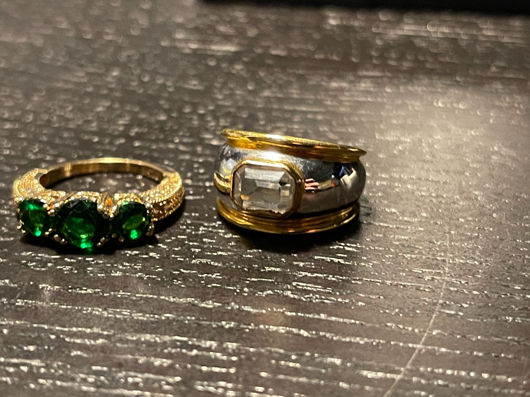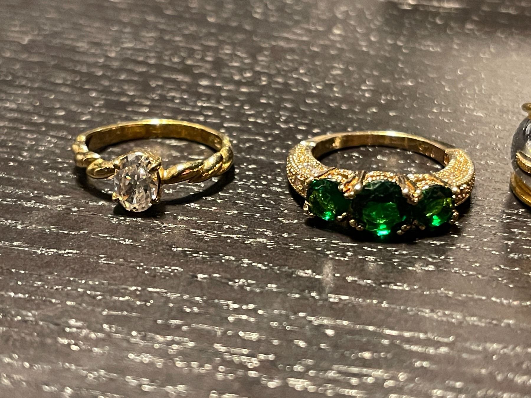 3 Gold Plated Sterling Silver Rings - Variety of styles and sizes - Total weight including gems: 10.5 grams