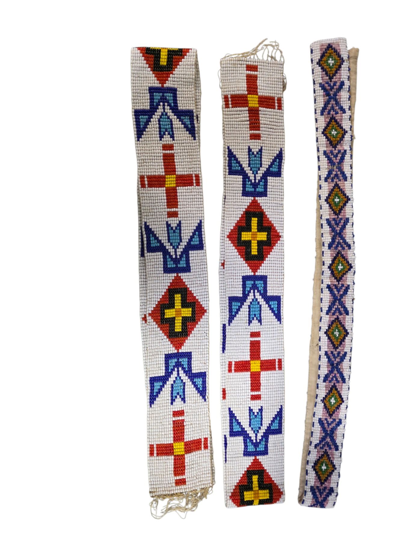 3 Handmade Beaded Straps - Native Geometric Patterns (Assorted Sizes)