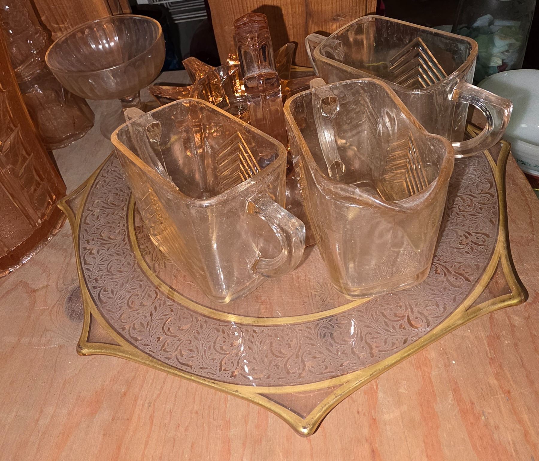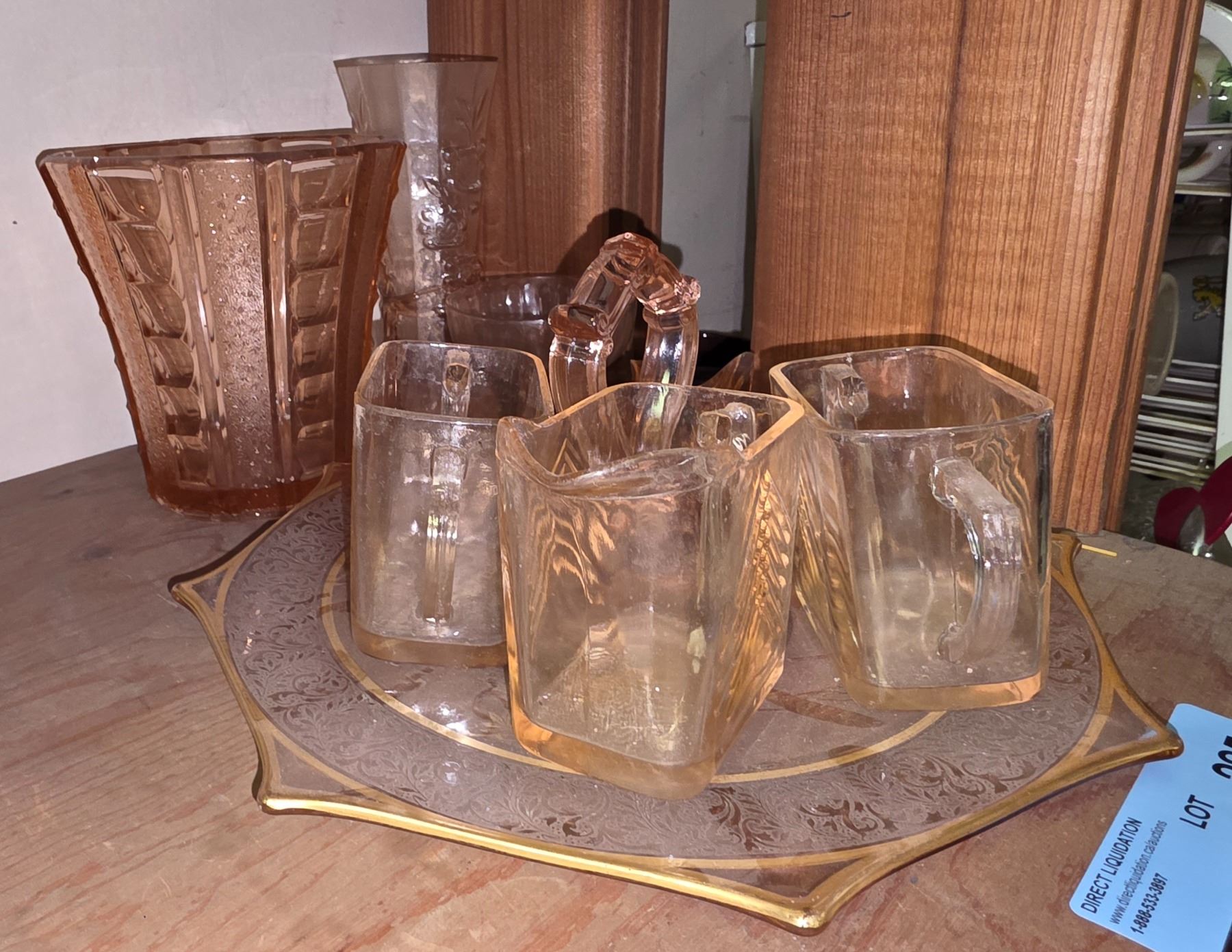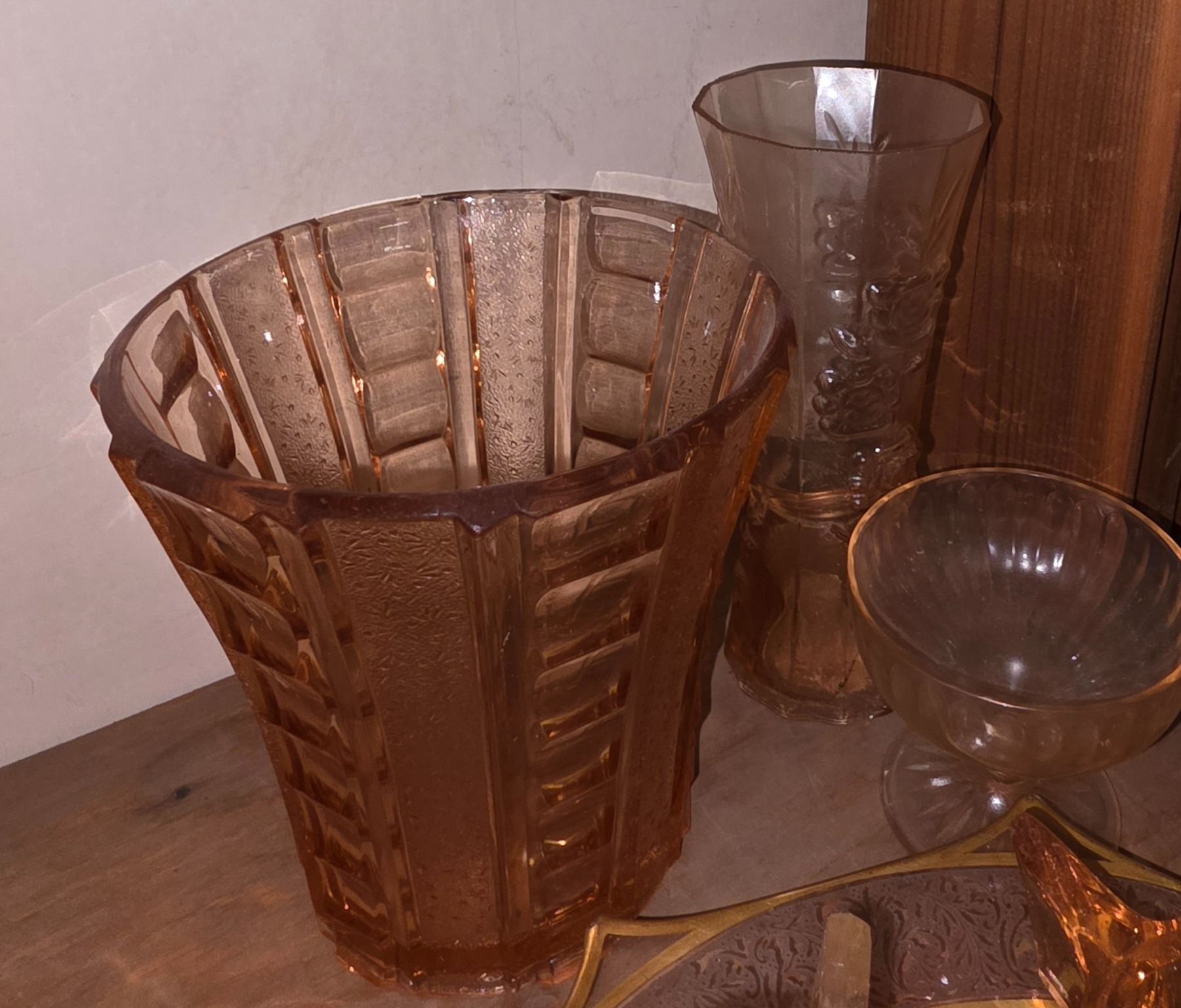 3 Hazel-Atlas Pink Depression Glass, and 5 Art Deco Glass Pieces