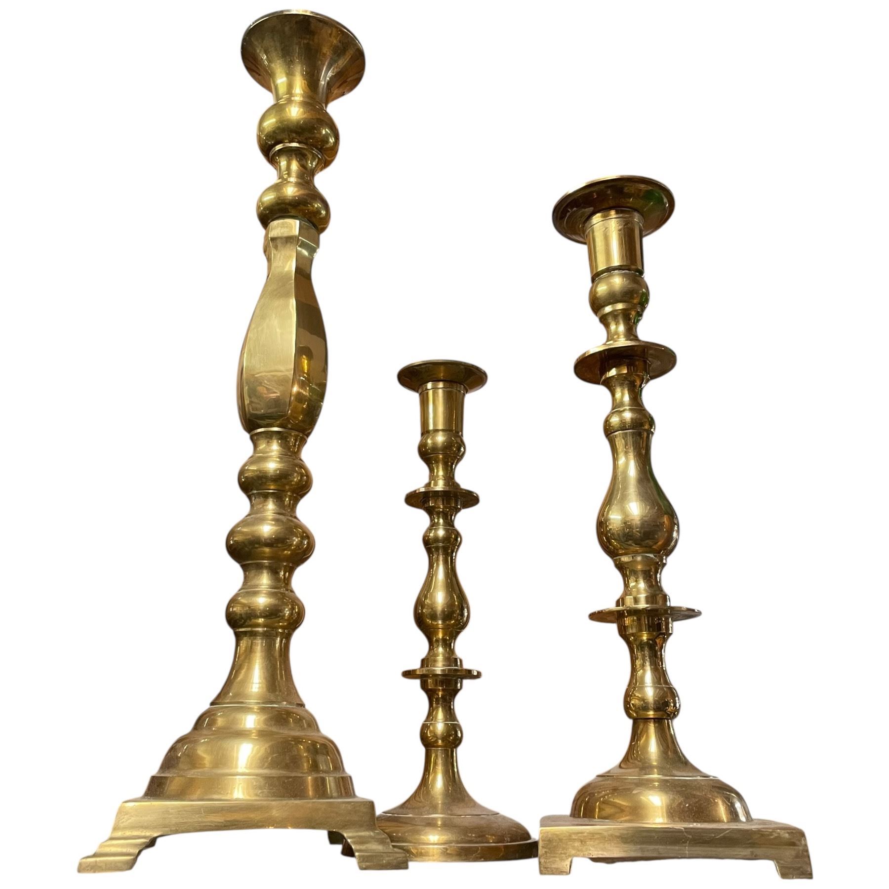 3 Large Brass Candle Sticks * Range in size from 13" to 22" tall