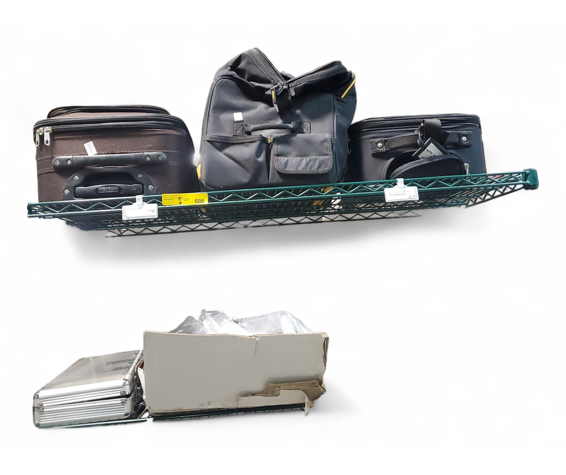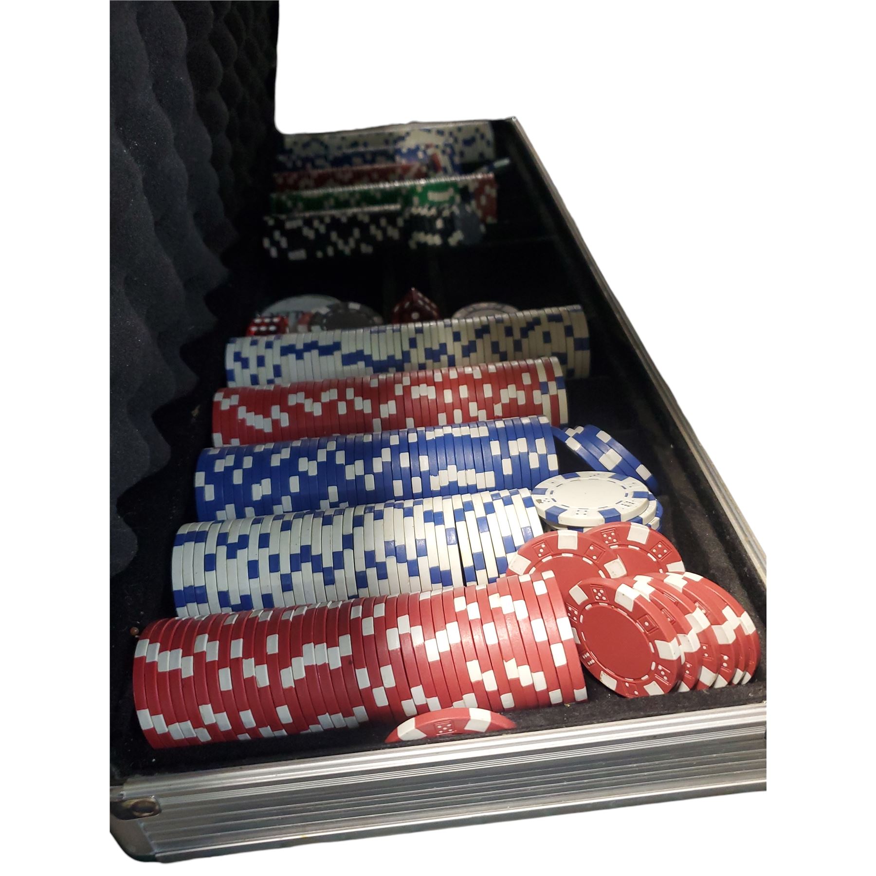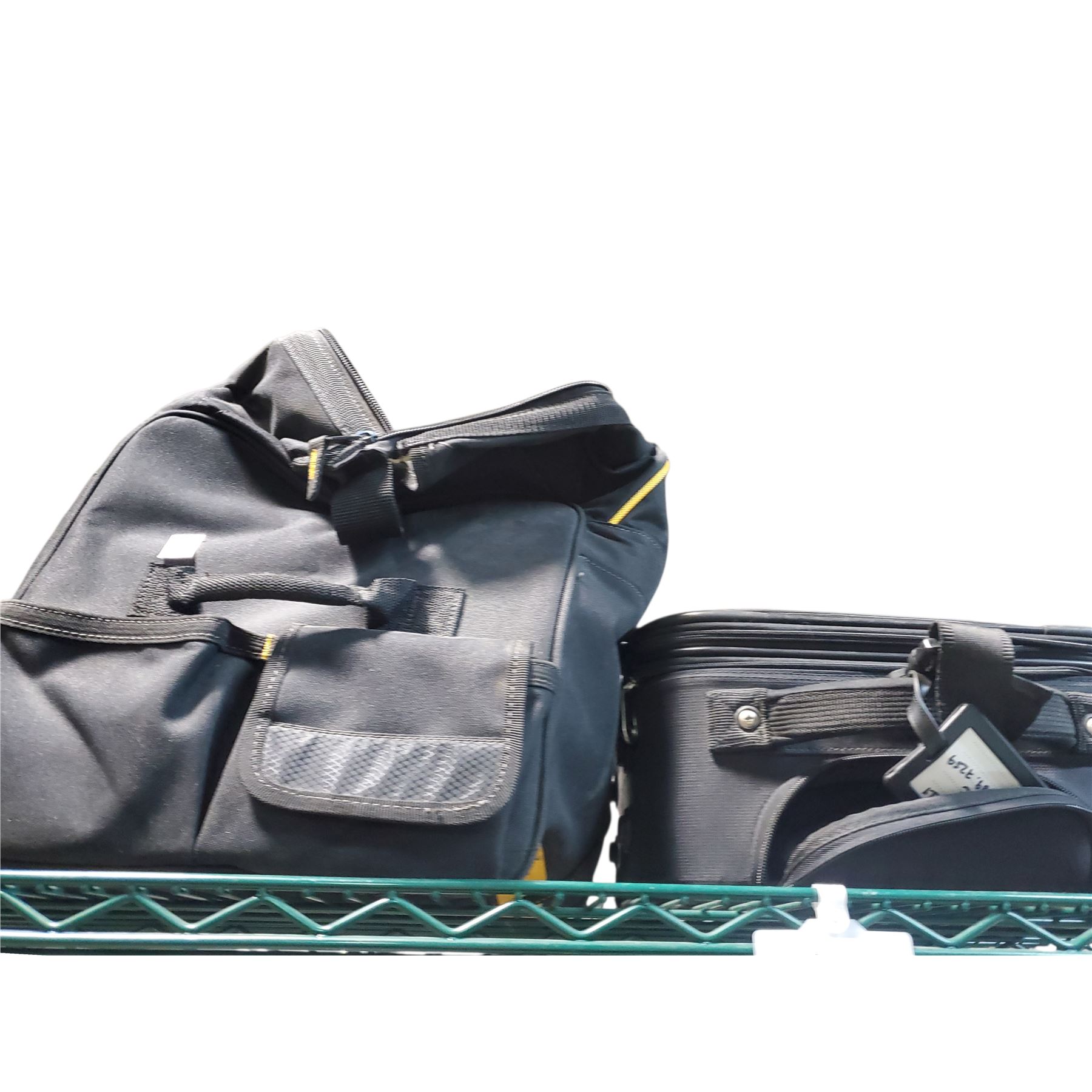 3 Luggage and Travel Bags, Poker Chips Set, and Full Box of Plastic Grinders