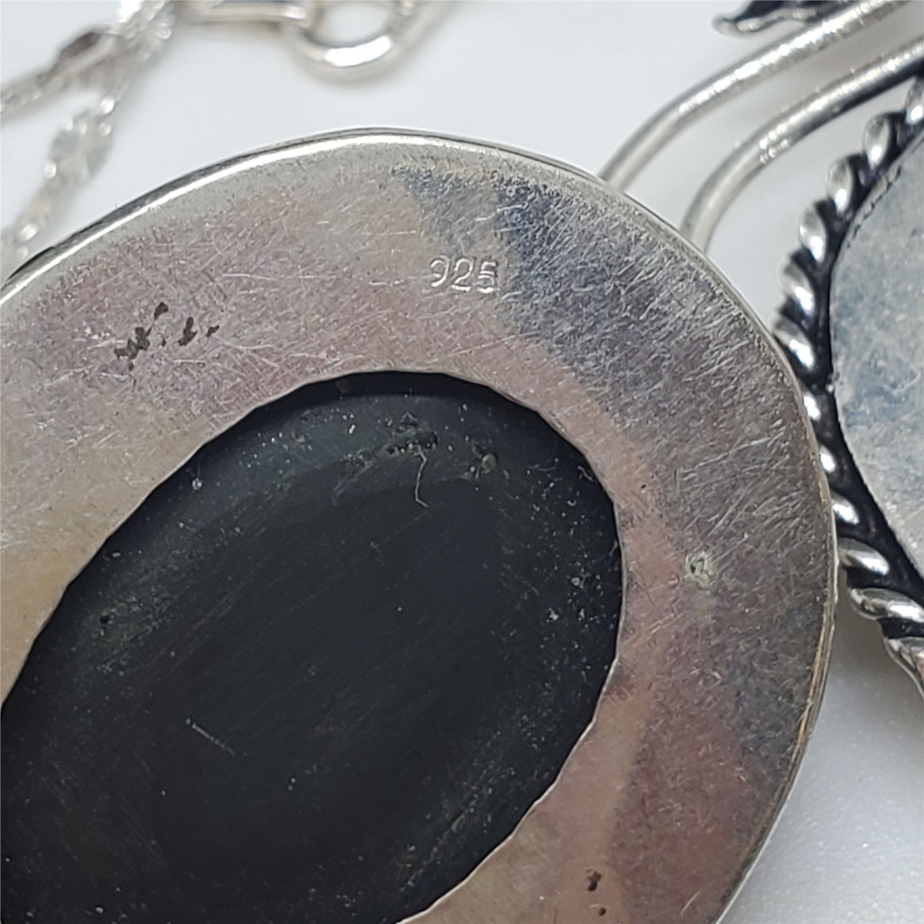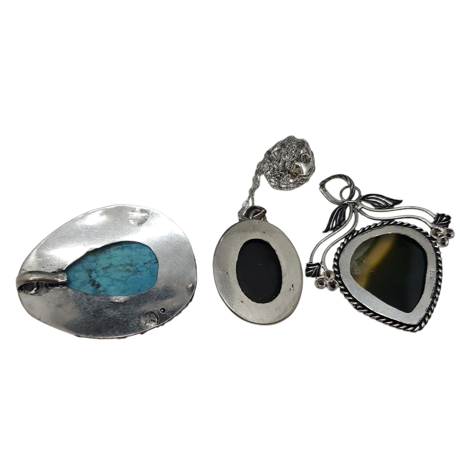 3 New Gemstone Pendants in Silver Settings and 1 Silver Chain (all stamped .925) - Total Weight: 56.7 grams