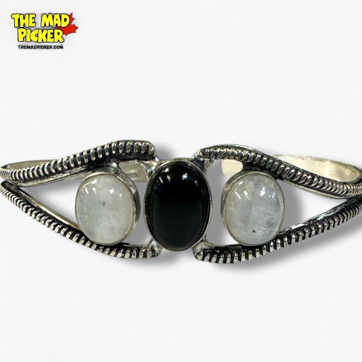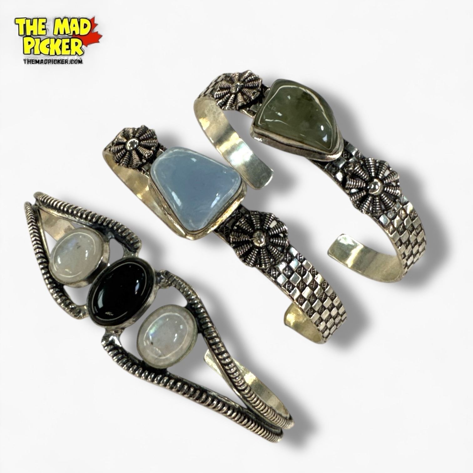 3 New Sterling Silver Cuff Bracelets with Semi Precious Gemstones - Total Weight: 61.4 grams