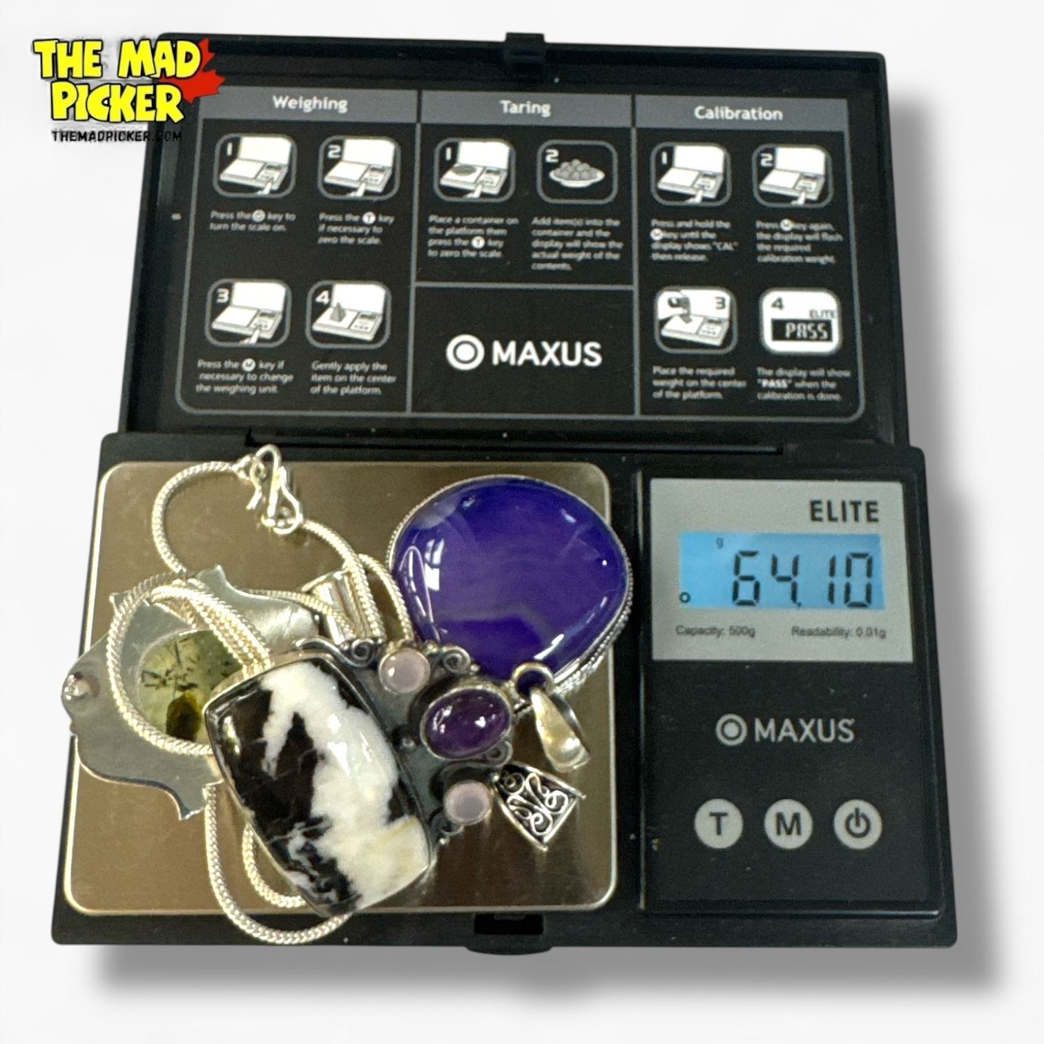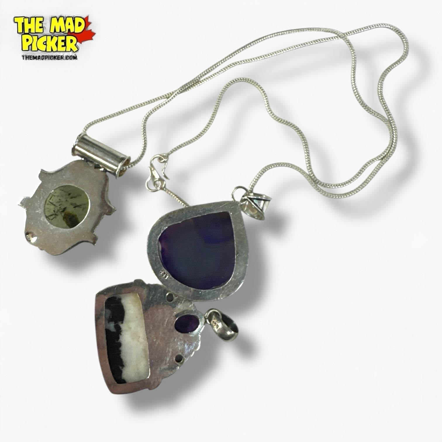3 New Sterling Silver & Gemstone Pendants and 1 Chain - Total Weight: 64.2 grams