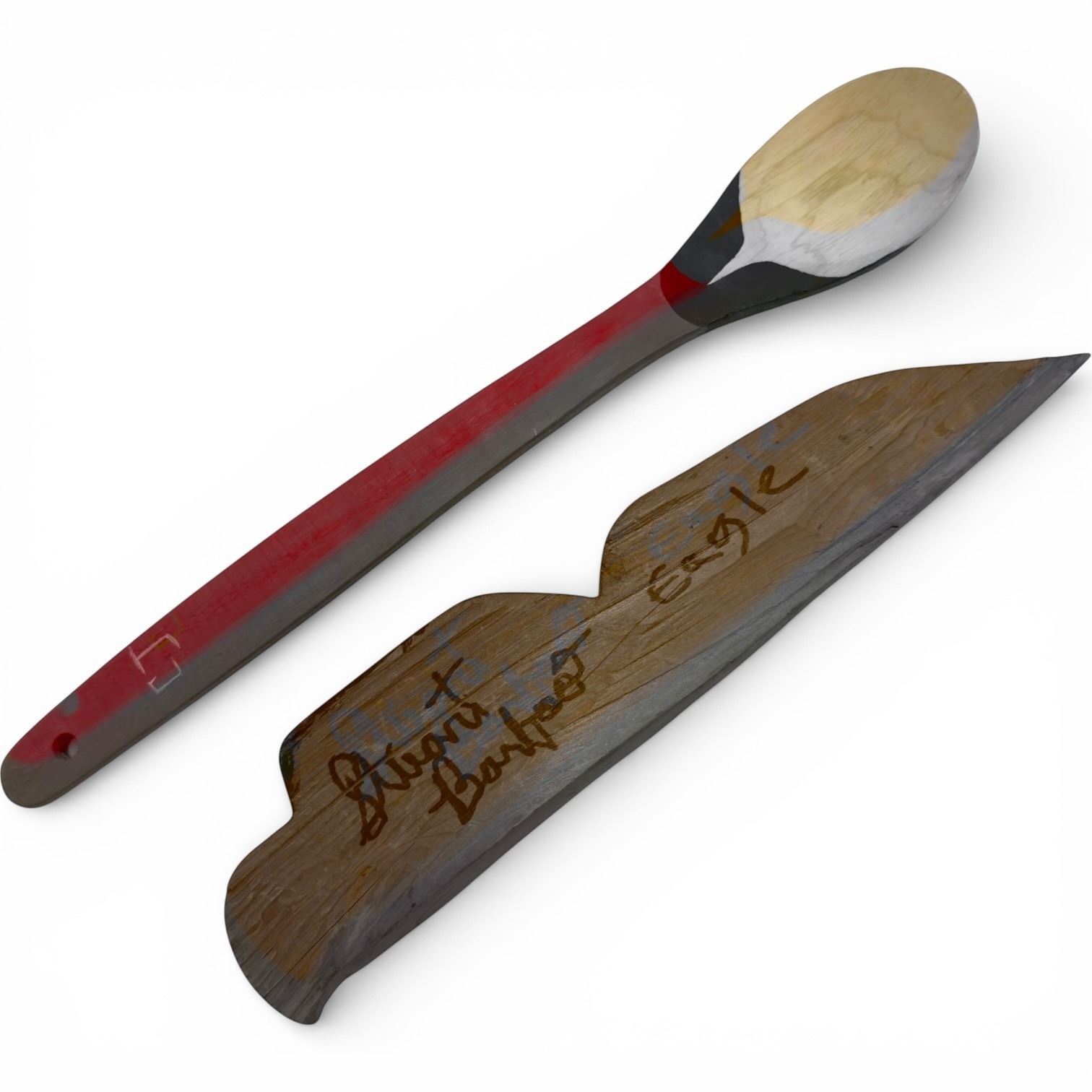 3 Northwest Coast Art Pieces (6" tall ceramic vase, 16" carved wood spoon, and Stuart Barfoot 12" x 3" carved wood eagle)