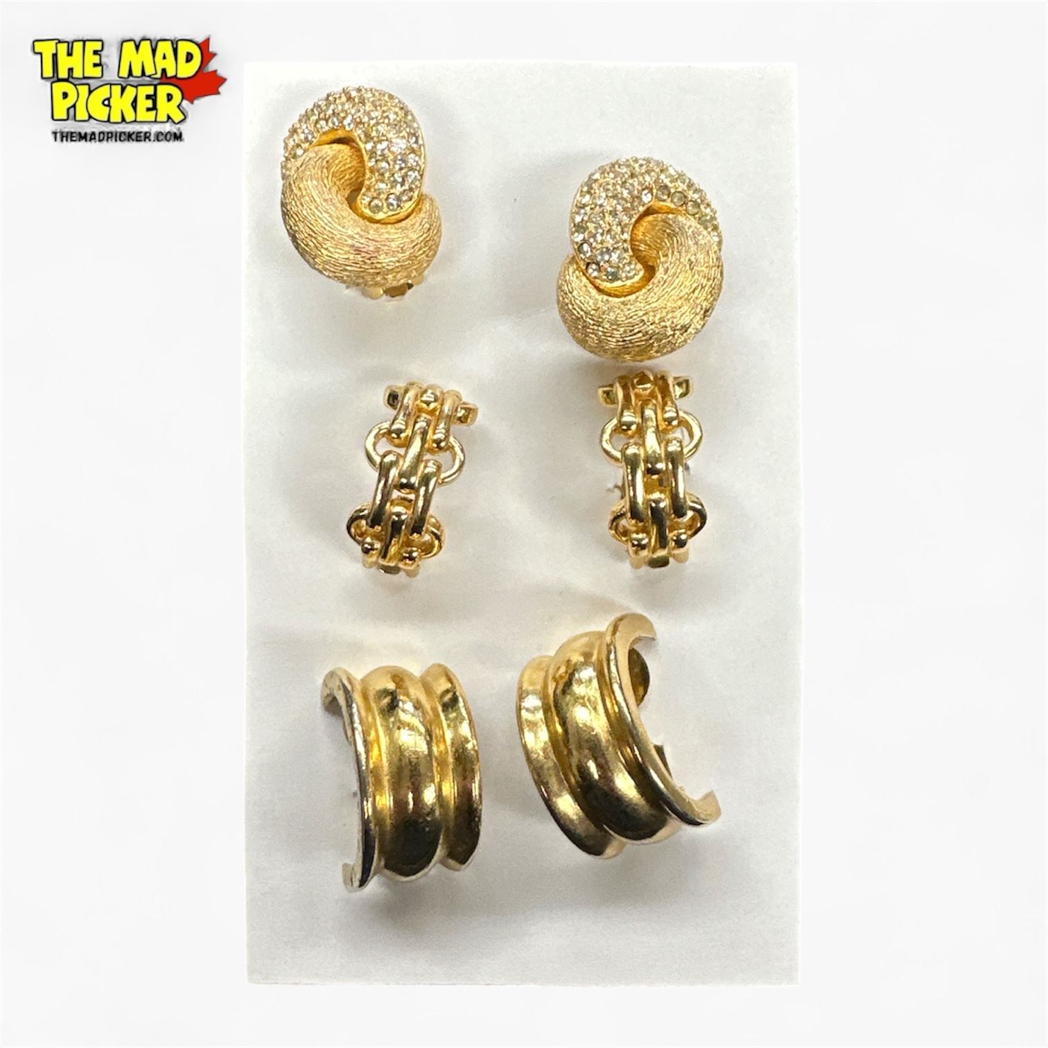 3 Pairs of 1980s Christian Dior Gold-Tone Clip-On Earrings (all marked Chr. Dior)