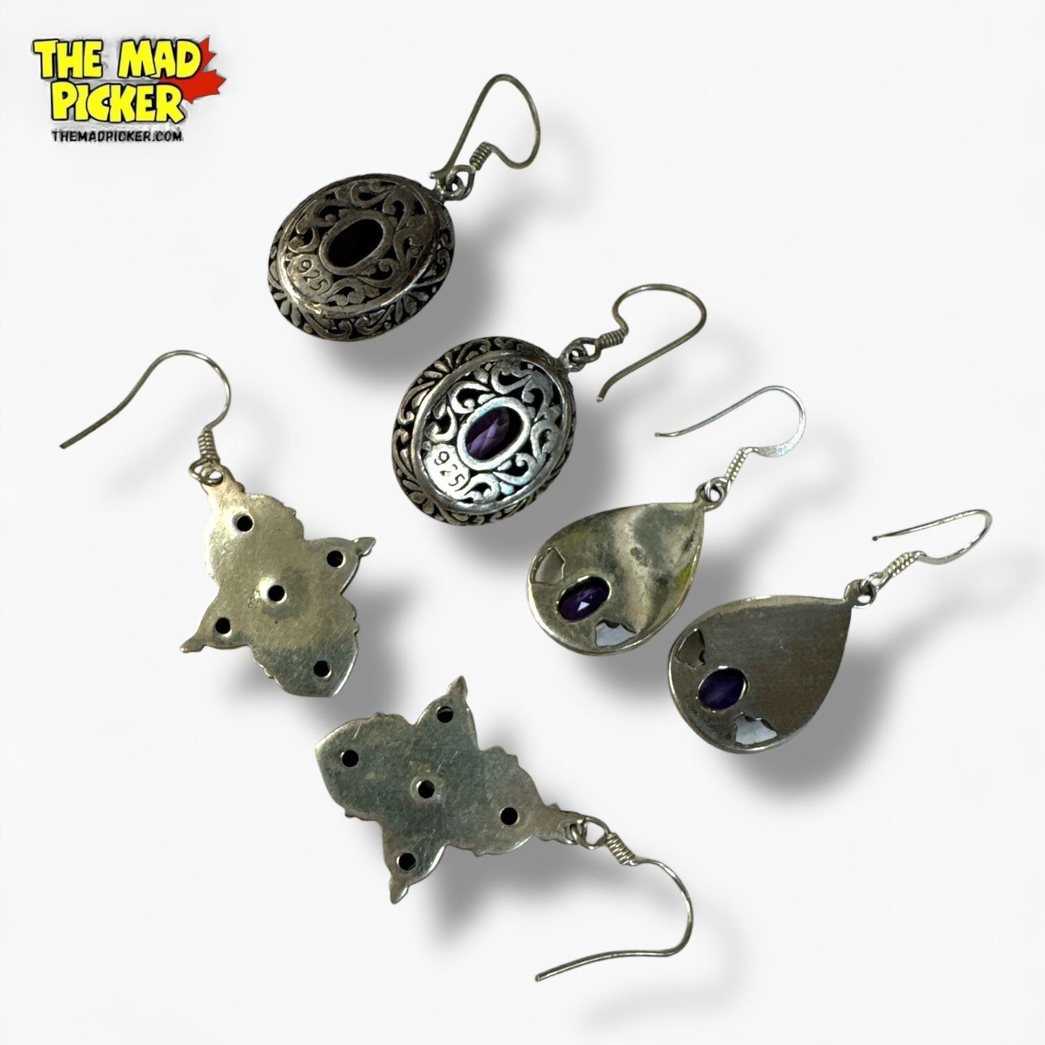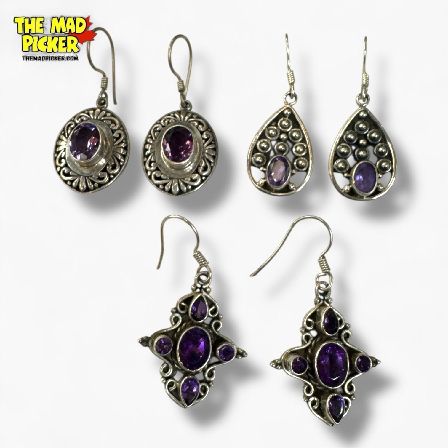 3 Pairs of Sterling Silver Amethyst Dangle Earrings - Total weight: 20.5 grams