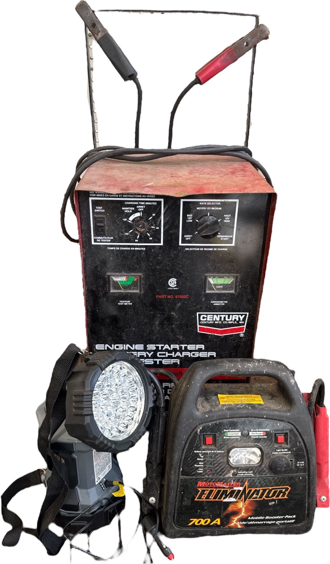 3 Pc - Motomaster Eliminator 700A Booster Pack w/ Century Engine Starter/Charger & Eliminator Light